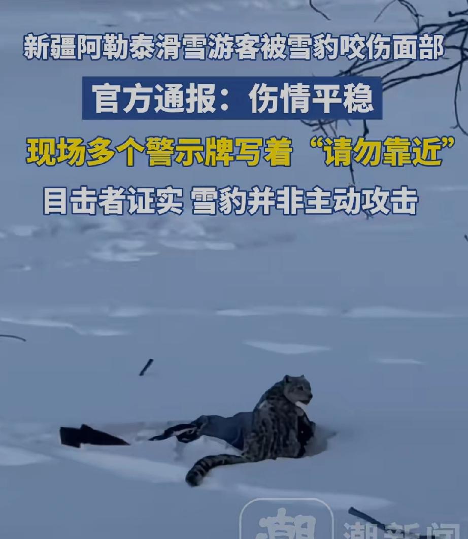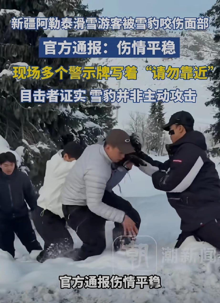 新疆阿勒泰滑雪游客遭雪豹咬伤面部!真相来了,官方通报,游客目前伤情稳定。 现场