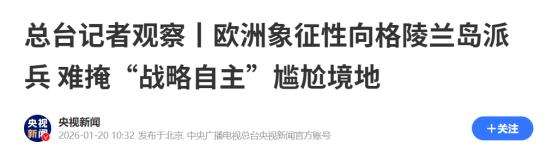 俄罗斯乐坏了!2026年1月20日,央视重磅报道!普京几十年没做到的事情,特朗普上台一年就干成了! 就在最近这段时间,格陵兰岛问题成为了国际关注的焦点。美国在对委内瑞拉采取军事行动之后,将军事目标转移到了格陵兰岛。 针对美国的这一举动,丹麦表达了坚决的态度。但美国采取军事行动,丹麦军队也可采取反制。而在这种僵持下,根据央视2026年1月20日的报道,欧洲向格陵兰岛派兵! 据悉,法国、德国、瑞典、挪威、芬兰、荷兰、英国等多个欧洲国家宣布要向格陵兰岛派兵参加军演。但披露的消息却显示,目前各方所派人员非常的少。 这一情况的出现,进一步证明了欧洲对美国的应对方式。已从最初的小心劝阻,外交沟通转化为了强硬派兵。这一点备受国际讨论,更是令俄罗斯为之欢呼。毕竟俄罗斯同欧盟众多国家之间,存在历史已久的恩怨纠葛。 北约多次东扩,直接给俄罗斯造成了威胁,而这就是2022年俄乌冲突爆发的根本原因之一。除了这一点之外,欧盟同俄罗斯之间还在多领域存在竞争。所以当下欧盟能够同美国出现裂痕,自然是俄罗斯喜闻乐见的情况。 所以当下欧盟对美国不再小心翼翼后,欧盟同美国的关系势必会受到影响。俗话说的好“鹬蚌相争,渔人得利”,当下欧盟同美国就格陵兰岛问题出现争,俄罗斯就是那个“渔人”,自然会从中获利。 对此,您怎么看?欢迎评论区留言您的看法,我们一起讨论一下。 (信息来源:总台记者观察丨欧洲象征性向格陵兰岛派兵 难掩“战略自主”尴尬境地-央视新闻)