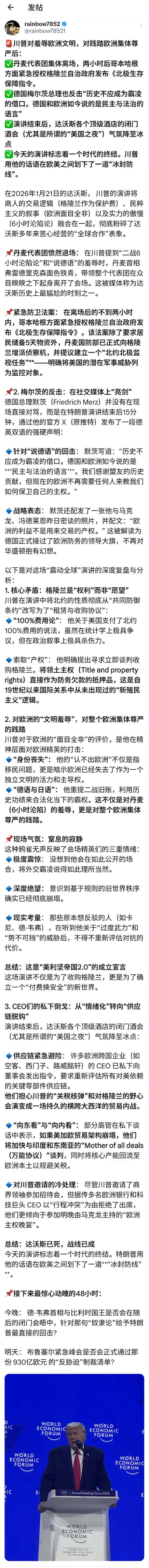 特朗普大闹达沃斯,欧美走向分裂,世界大变局👏