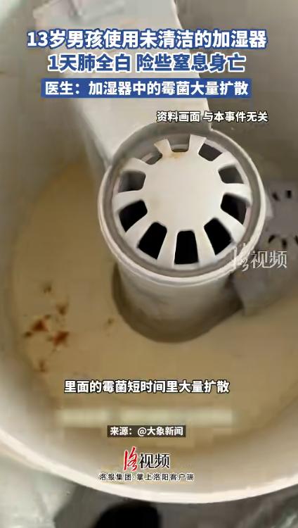 “悲剧还是发生了!”1月22日,河南郑州,一男孩见空气干燥,就把没有清洁的加湿器打开使用,结果一天后开始呼吸困难,送医检查,发现男孩的肺已经全白,里面全是水,像被冻住一样,差点窒息死亡!网友:还敢乱用吗? 1月22日,一名十三岁的男孩因为一次再普通不过的生活操作,险些丢了性命。 事情的起因是前几天的时候小男孩独自在家的时候觉得家里面开暖气实在是太干燥了,于是就随手将准备清洗的加湿器给打开了。 起初,一切看起来都很正常,房间里湿度明显上升,空气不再干燥,男孩也没有任何不适反应,当天晚上,他照常休息,没有出现明显异常。 但第二天一早,问题开始显现,男孩醒来后感到胸口发闷,呼吸不顺畅,像是气吸不进去,说话也变得费力,家人一开始以为是普通感冒或支气管不适,让他多喝水休息。 然而随着时间推移,他的症状迅速加重,呼吸频率明显加快,面色发白,甚至出现喘不上气的情况,这时候家人意识到情况不对,立即将他送往医院急诊。 检查结果让所有人倒吸一口凉气,影像显示,男孩双肺呈现大面积白影,几乎看不到正常肺纹理,医生形容他的肺部“像被白色雾气完全覆盖”,肺泡内大量积液,已经严重影响气体交换,随时可能发生窒息。 后来医生追问的时候找到了罪魁祸首,就是家里面那台看似不起眼的加湿器,紧接着医生还科普到说,家里面的加湿器长时间不用的话,在潮湿的环境下面很容易滋生细菌,后随水雾化出来影响身体健康。 对于成年人来说,短时间吸入可能只会引发咳嗽或轻微不适,但儿童肺部发育尚未完全,免疫系统相对脆弱,吸入后更容易引发强烈的炎症反应,导致肺泡渗出大量液体,迅速形成“白肺”。 医生表示,如果送医再晚一些,孩子很可能因呼吸衰竭而出现生命危险,所幸抢救及时,男孩经过吸氧、抗感染和对症治疗后,病情逐渐稳定,目前已脱离生命危险,但仍需持续观察和康复治疗。 事件曝光后,引发大量网友讨论,许多人表示震惊,“家家都有加湿器,谁会想到这么危险”,也有人坦言,自己平时几乎从不清洗水箱,更不会意识到雾气里可能藏着病菌。 医生随后提醒,加湿器并非“插上就安全”的电器,凡是涉及水雾吸入的设备,清洁要求极高,必须定期彻底清洗和消毒,使用前应确保水箱干净无残留,最好使用纯净水或凉白开,长期不用的设备再次启用前更要重点清洁。 这起事件并非个例,而是一堂代价极大的安全课,很多看似“生活常识”的疏忽,一旦叠加在儿童身上,就可能演变成致命风险。 一次随手的操作,差点改写一个家庭的命运,也提醒所有人,安全,永远不是小题大做。 信息来源 :洛视频