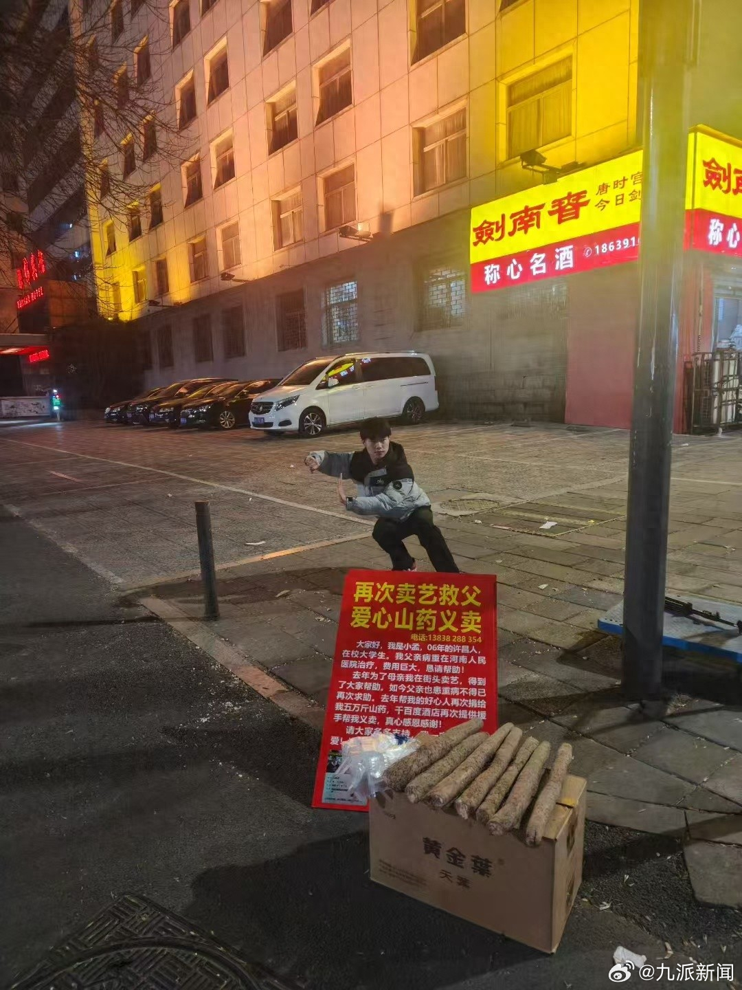 #20岁小伙为患癌父亲筹款街头直播#【#为患癌父亲筹款街头直播小伙发声#:为守住家人面子无所谓】1月下旬的冬夜,顶着寒风,今年20岁的孟施成在河南郑州街头的十字路口直播,他随着音乐跳舞,也打起熟悉的武术动作,一段表演结束,他鞠躬说“谢谢”。直播间里实时在线超过2000人,评论区里多是“加油”的鼓励,有好心人怕他冷,特意送来耳罩。他的身后摆着要售卖的好几捆山药,不时有人来购买。一切为了给躺在ICU的父亲筹集治疗费用。去年12月,孟施成的父亲被确诊胆管恶性肿瘤,目前刚做完肿瘤切除手术,但因为术后感染,仍未脱离危险。事实上,这不是他第一次为家人奔波筹款。2024年冬天,母亲因宫颈癌住院,他就曾用直播表演武术和卖山药的方式筹措医药费。但最终,母亲因感染脓毒症抢救无效离世,留下他和父亲、正在上初中的弟弟,以及一身债务。孟施成来自河南许昌禹州,目前是同省三门峡市一学院的大三在校生。自从父亲病重倒下,他向学校请了假,几乎全天守在医院。弟弟在老家陕西汉中由姥爷照看,并不知道父亲患癌的实情,所有压力落在了孟施成一个人身上。连日来,他的经历逐渐为人所知,不少好心人专程前来买山药、捐款、送生活用品。他说,目前筹到的钱已经能填补此前拖欠的医药费,ICU的短期开支也即将有着落,但后续抗肿瘤治疗仍需约40万元。