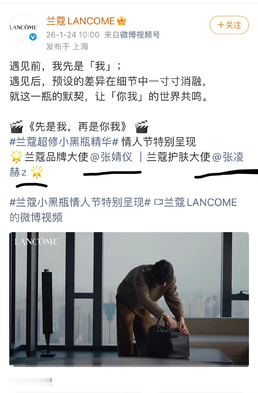 张凌赫粉丝正在兰蔻官博下维权,品牌给了护肤大使支线,你觉得与他咖位匹配吗?