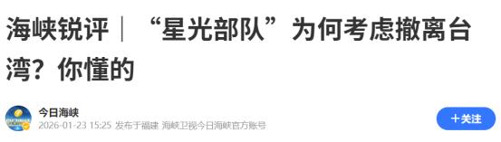 北京下最后通牒?2026年1月23日报道,新加坡连夜撕毁长达半世纪盟约,赖清德彻底崩了! 从一开始采用温和的方式对待,到现如今接连对台采取军事行动。我国在用实际行动,去阐明中国对台湾问题的立场。而随着我国针对台湾问题态度越发强硬,不少国家紧急转变对台态度。 就在2026年1月23日的时候,据媒体报道。根据新加坡军方背景人士的透露,针对台湾问题,新加坡可能不再保持“中立”的态度,以此避免成为筹码。而最直接的措施就是让“星光部队”撤离台湾地区,加速转移到其他地点。 此事立即引起国际高度关注,更是在台岛内引起极大轰动。引起轰动最根本的因素在于,星光部队在台驻扎已有长达半个世纪的时间。 当时由时任新加坡总理李光耀,与台湾地区时任行政机构负责人蒋经国签署了相关的文件,之后星光部队便驻扎进了台湾地区。 那么新加坡是否是支持台湾独立呢?其实并不然。致使新加坡将部队驻扎在台湾的原因是因为新加坡国土很小,当新加坡被外敌攻陷的时候,驻扎在国外的新加坡部队就能够迅速登陆,收复新加坡。 台湾地区的地理位置就非常的特殊,这也是新加坡为何会将部队驻扎在台湾的主要原因。现如今受到国际局势影响,新加坡考虑放弃中立的模糊态度,决定撤离星光部队。此事必定会让台独分子为之恐慌,而作为台当局领导人的赖清德也势必会受此事影响。 对此,您怎么看?欢迎评论区留言您的看法。 (信息来源:海峡锐评|“星光部队”为何考虑撤离台湾?你懂的-今日海峡)