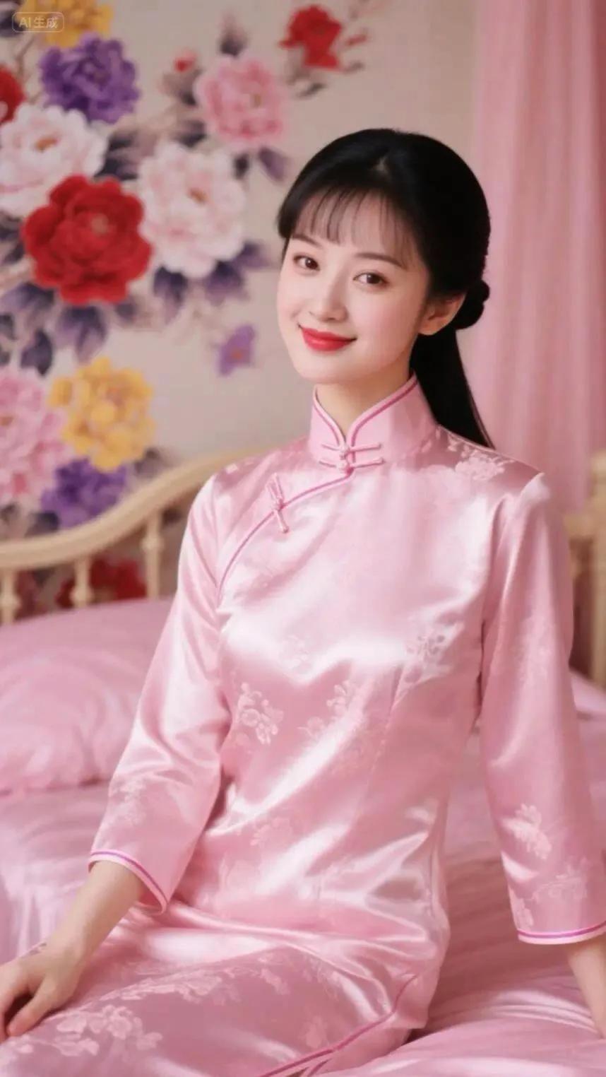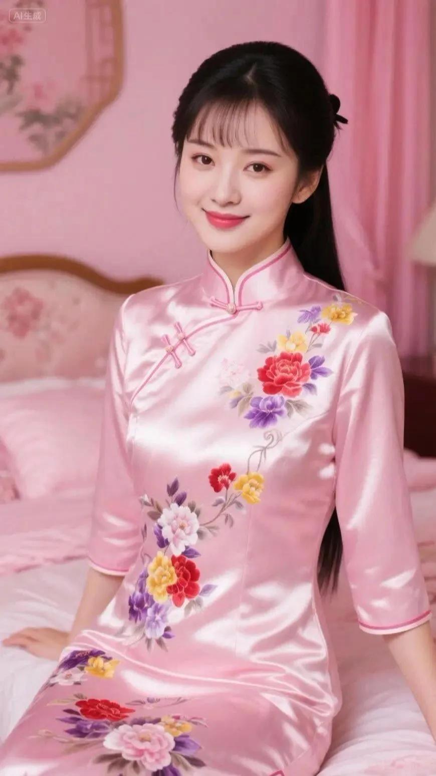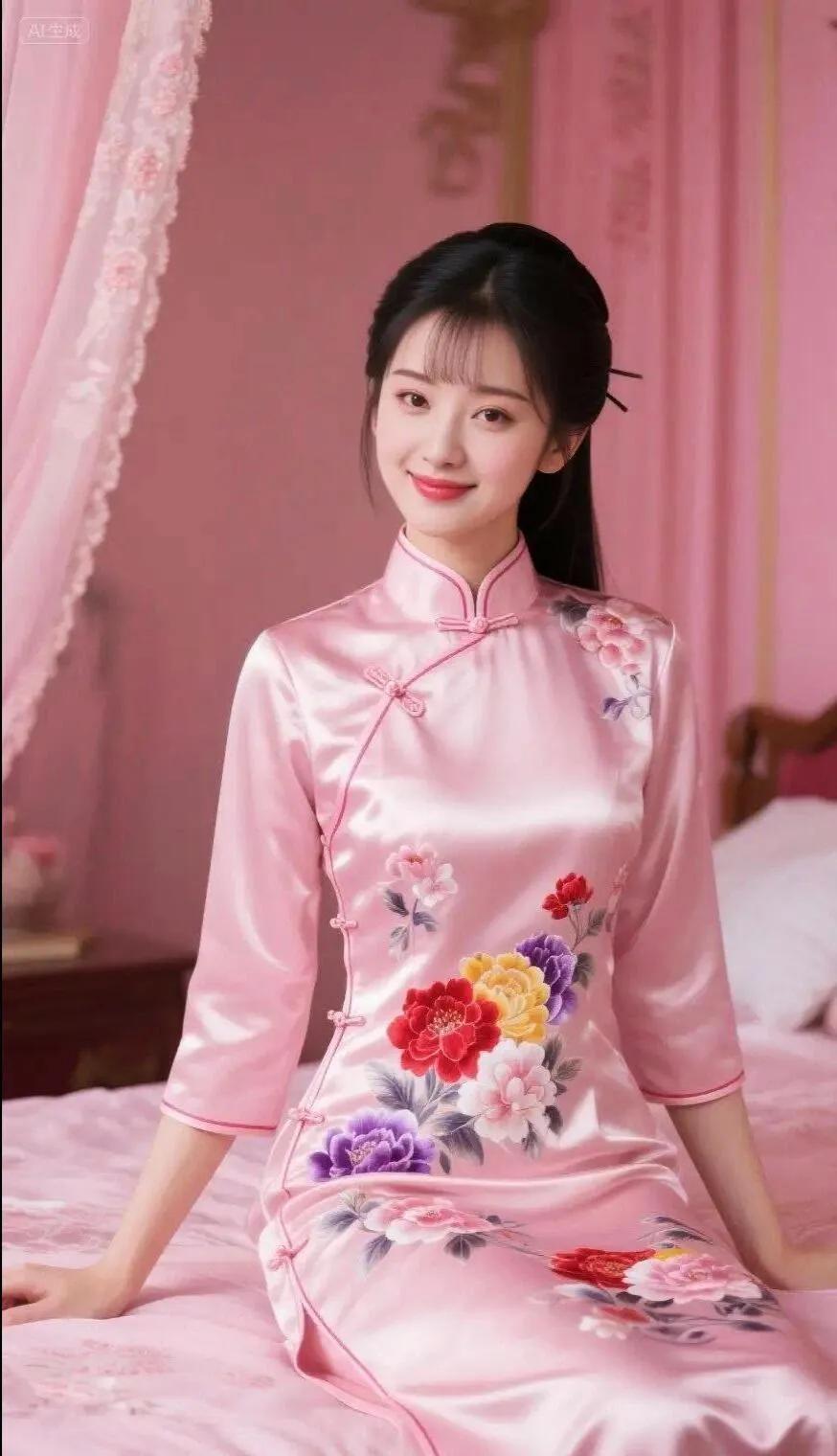温柔粉色的中式旗袍,古典优雅,尽显东方韵味。