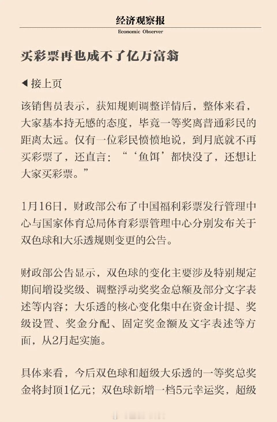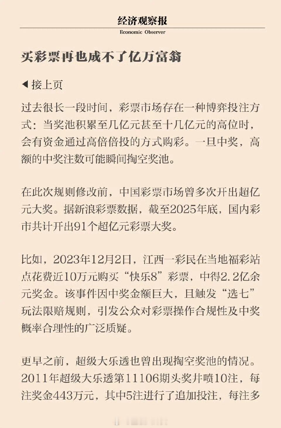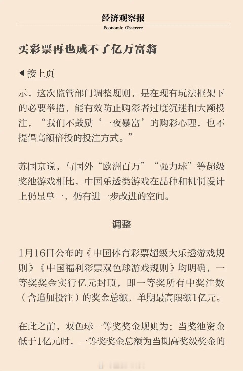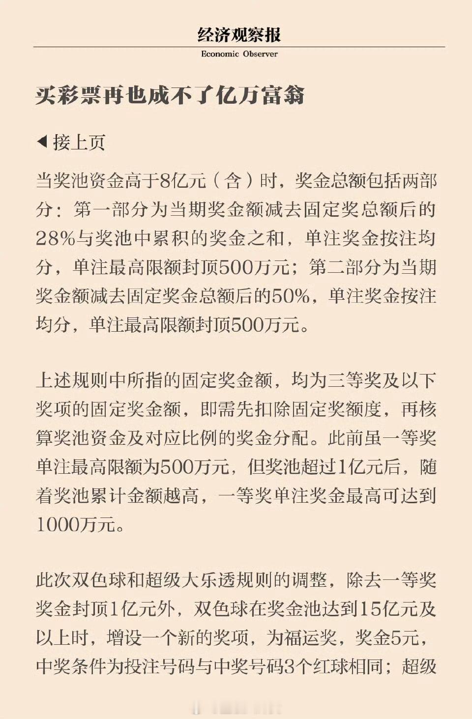 彩票一等奖1亿元封顶买彩票再也成不了亿万富翁
