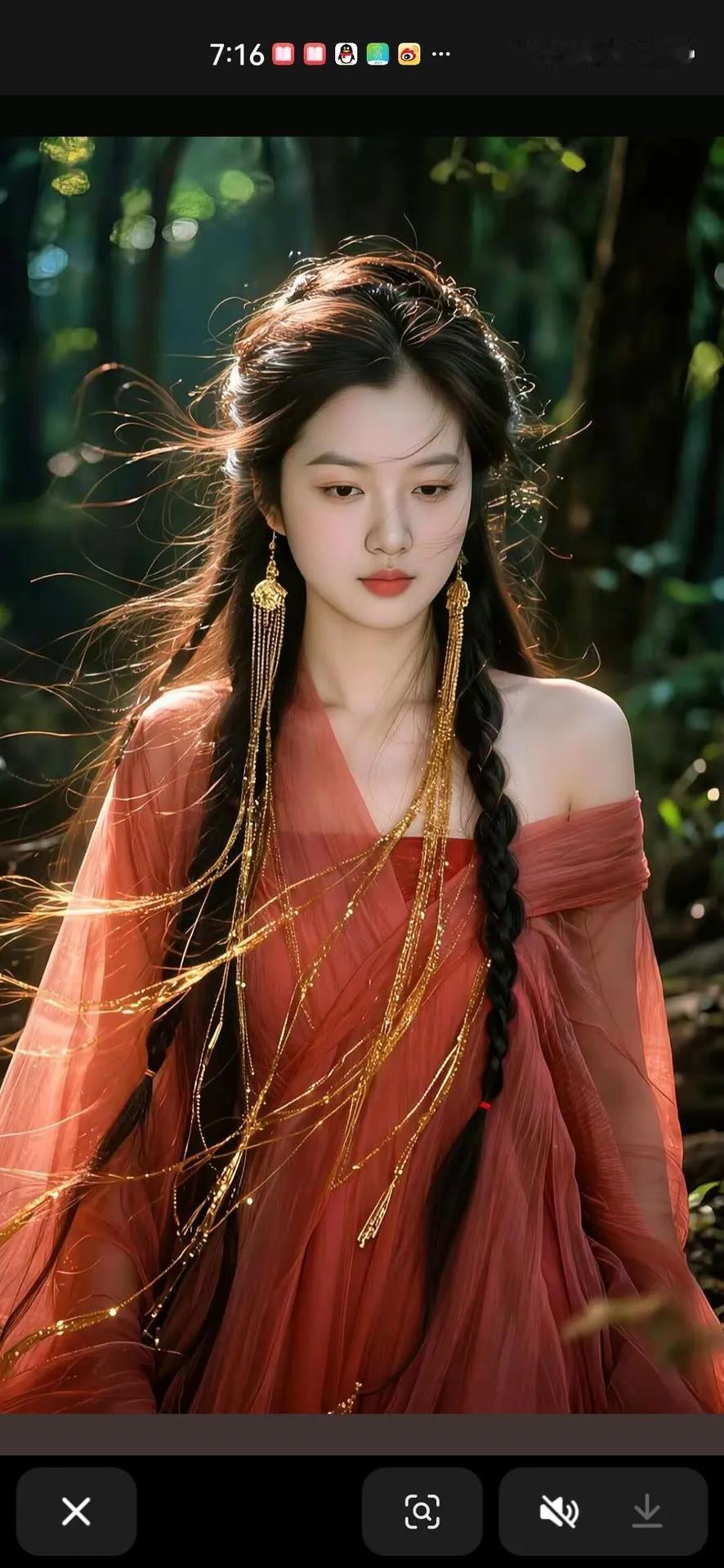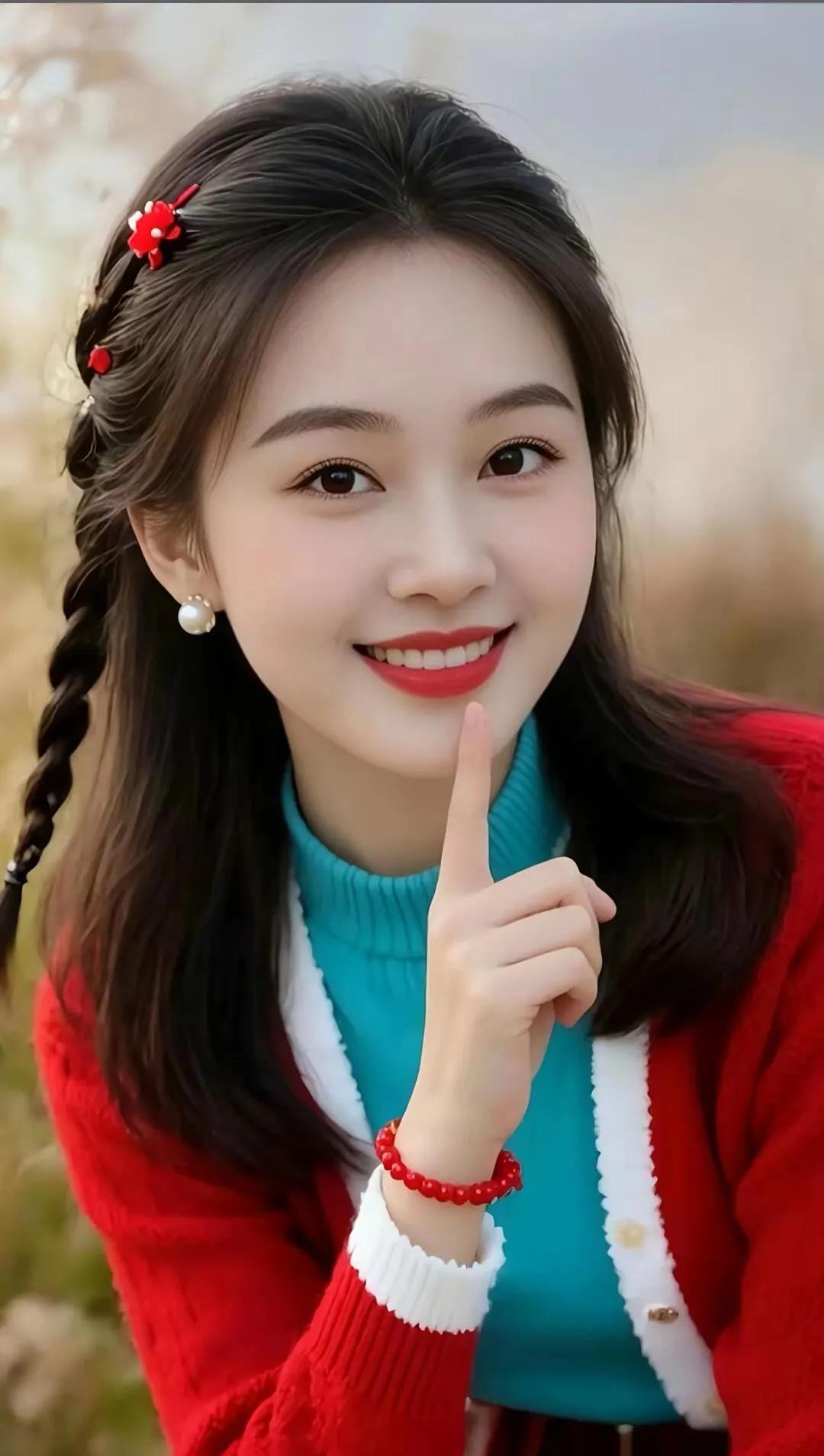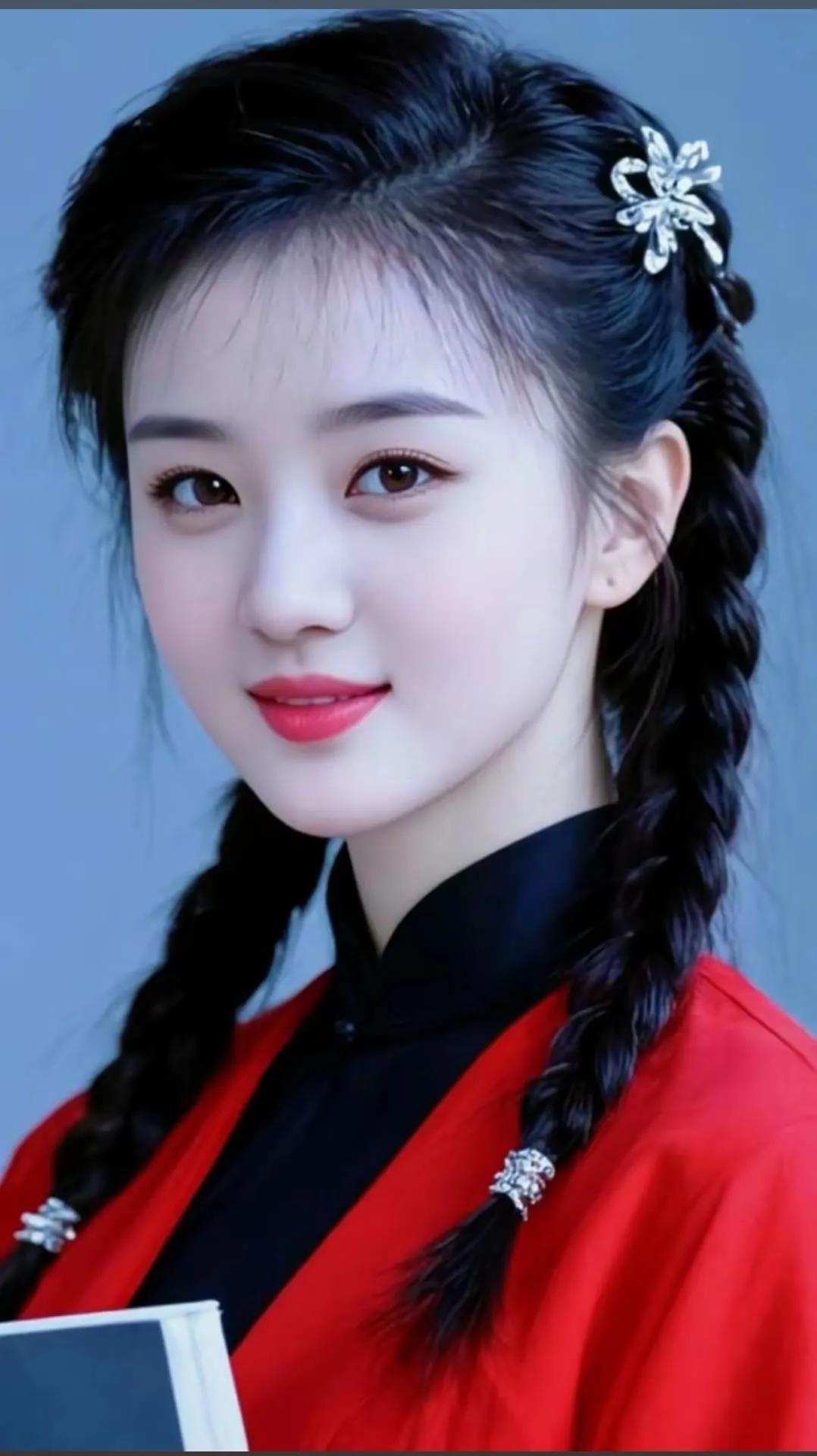 梦幻少女风,优雅蓝裙,甜美红唇,复古背景,仙女范十足!💖🌹👗