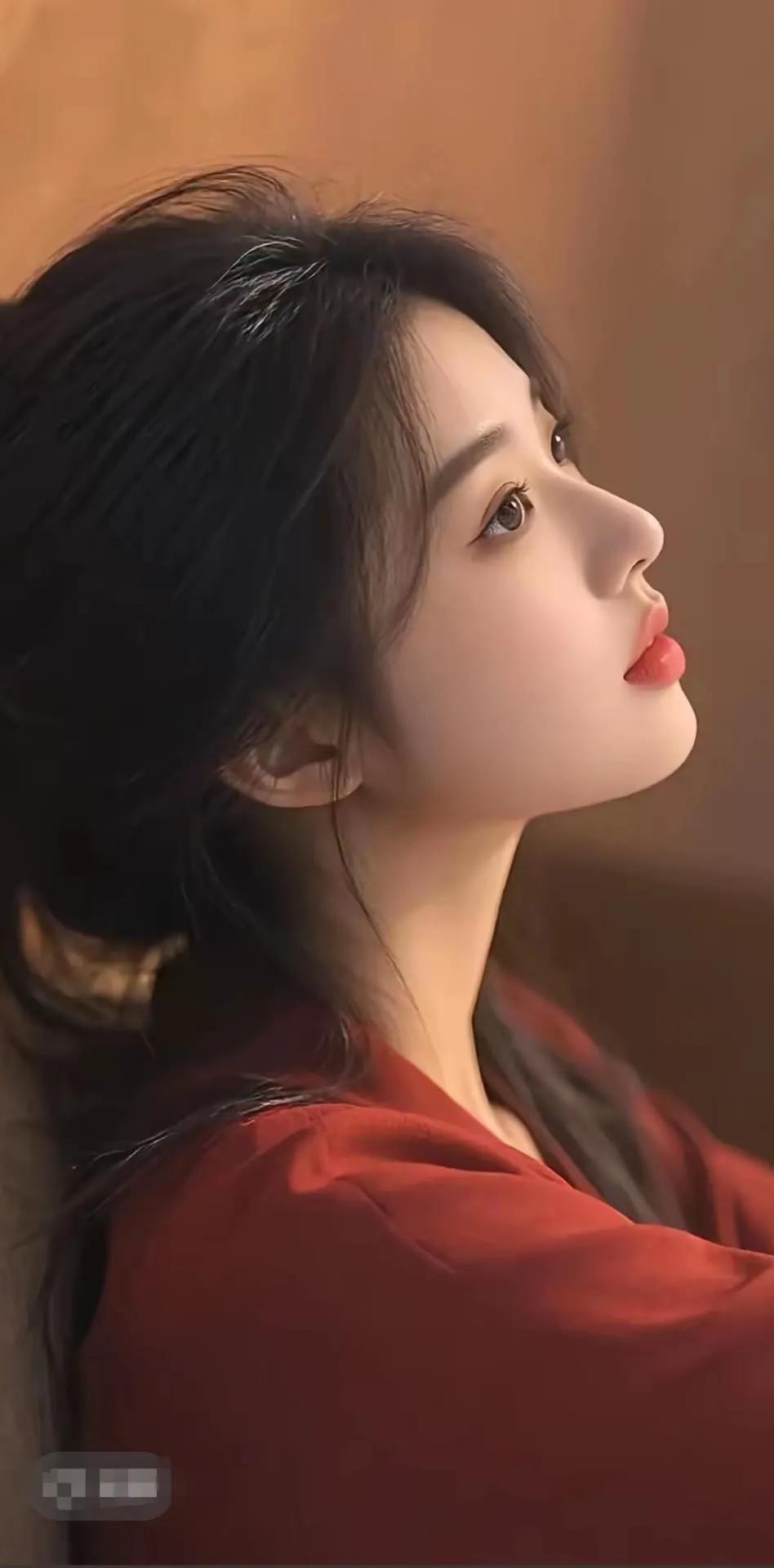 古典美人,花钿妆点,红衣飘逸,古风韵味十足。