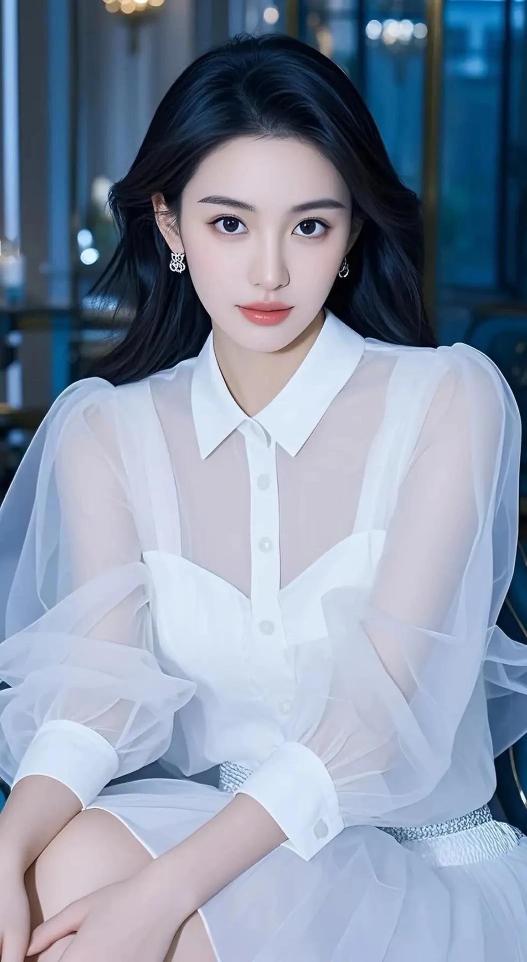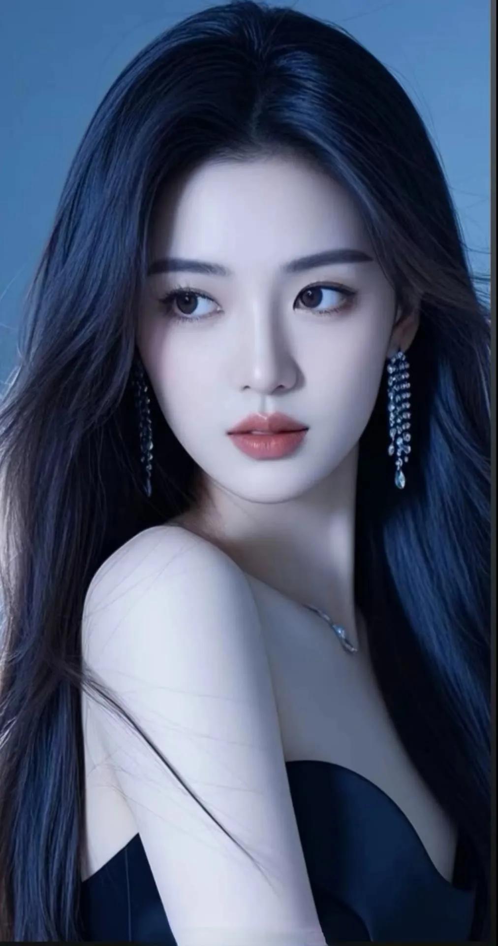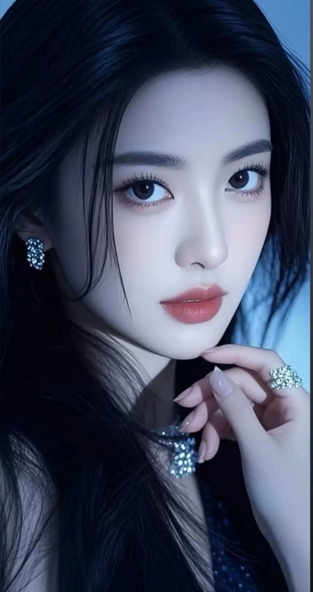 梦幻少女风,优雅蓝裙,甜美红唇,复古背景,仙女范十足!💖🌹👗