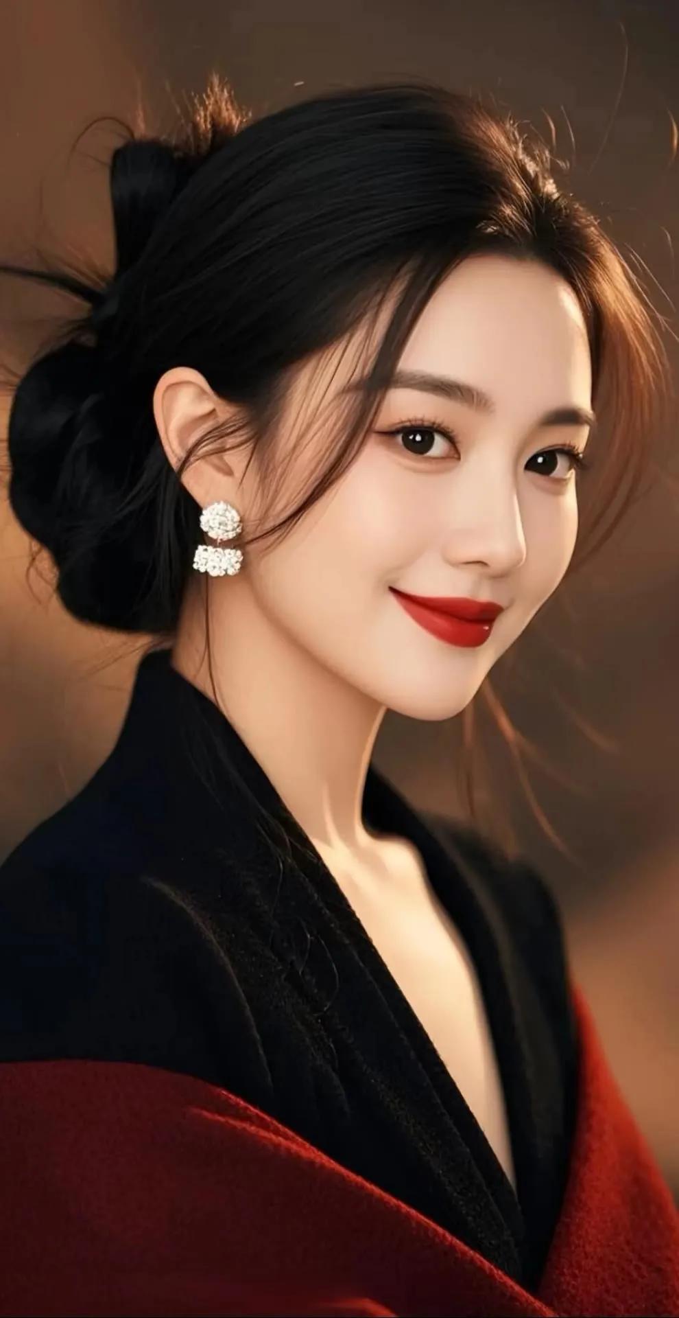 古典美人,花钿妆点,红衣飘逸,古风韵味十足。