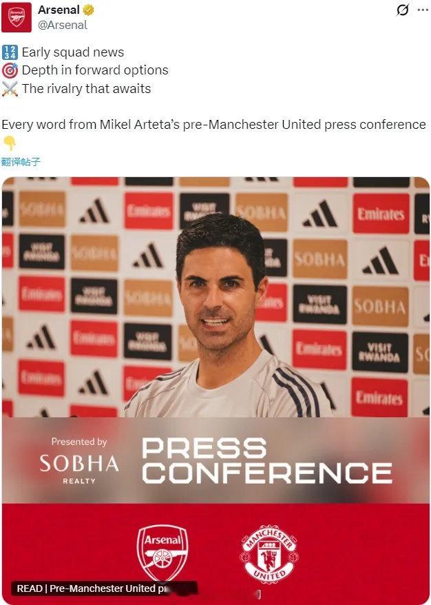 阿尔特塔出席了赛前新闻发布会,我们来看看阿森纳主帅的发言。卡拉菲奥拉和因卡皮耶似乎恢复训练了,他们为周日的比赛做好准备了吗?是的,我们还有一场训练课,所以我们明天看看再说,我们会评估所有人,首先,要决定他们能不能进入大名单。对国米的比赛后有伤病问题吗?没有,那场比赛之后没有什么问题。哲凯赖什、热苏斯和哈弗茨现在都能出场,幸福的烦恼来啦,这是不是你从赛季初就想要的?是的,我们一直在等待这一刻。并且我们接下来有很多比赛,他们都会获得机会和时间。所以,他们都复出真是太好了,特别是还保持了很好的状态。我想问问恩瓦内里,我们知道他要在马赛租借到赛季结束,从你的角度来看,这是不是一个艰难的决定,背后的关键动因是什么呢?我认为我们的天才小将需要比赛时间。恩瓦内里的情况也一样,他没有足够的出场时间,而我们不想看到他停止成长,因为他是如此有天赋,足球是他的热爱和生命。在和恩瓦内里、他的父亲、经纪人以及俱乐部沟通之后,我们决定最好的选择就是让他外租,然后就是选择合适的球队。在所有的选择中,我们很了解马赛,而且萨利巴也有租借经验,那里还有德泽尔比,他很擅长培养年轻球员,球风也很勇敢,我认为这很适合恩瓦内里。所以对他来说这会是一段很宝贵的经历。哈弗茨和热苏斯的复出是否会让你相信可以帮助哲凯赖什恢复到他之前你想签他时的水平?是的,要想稳定的拿出这样的表现需要很多事情发生,但哲凯赖什身边有很多不同的搭配。比如哈弗茨可以踢攻击型中场,这样我们就能根据对手的情况做出相应的变化,这点非常好。我想问问哈弗茨的情况,他已经回到球队几周时间,但至今我们还没看到他出战英超和欧冠比赛,你能告诉我们你对他身体状态的评估吗?他已经非常接近,显然哈弗茨缺阵了很长一段时间,由于种种原因几乎缺阵了1年,所以我们必须在管理他的身体负荷时小心谨慎,我很确信未来几周他会得到出场时间。我没法告诉你们是哪项赛事可以出场,因为这也取决于比赛的情况是否适合把他换上。哈弗茨复出是好事,他能踢很多位置,我们对此很满意。我知道你并不常使用社交媒体,但也许你知道阿森纳球迷群体中存在的紧张情绪,这种紧张情绪甚至蔓延到了比赛现场。你们在欧冠中排名第一,在英超联赛中领先七分。你有什么话想对支持者们说,以安抚他们的紧张情绪吗?关键不是安抚,关键是我们继续拿出优秀的表现,并努力每天都能更进一步,从球迷的角度来说,他们要继续在球场里创造更多的活力和积极的因素,这样我们就能让对手陷入更加艰难的境地,进而帮助我们赢下更多比赛。瓜迪奥拉说你们是现在世界上最好的球队,你同意吗?我不知道,我认为我们是一支想要不断进步的球队。我们已经做好了很多事情,但我们距离完美还差很远。我们的目标就是保持这样的水平,然后在一些地方继续提升。我想问问萨卡,他已经连续12场比赛没有进球,是职业生涯并列最长进球荒,你怎么看?这种情况总是有可能的,但是他在比赛中对我们整体进攻的影响,以及他吸引对手包夹,还有为其他球员创造的空间,这些不可忽略。我们当然希望萨卡每场比赛都进球、助攻,这也必须是他的目标,所以我们正在努力。