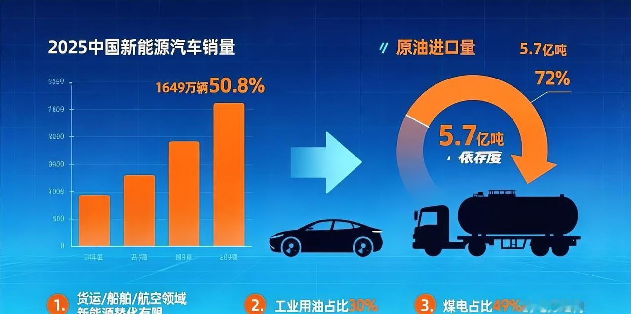 去年新能源车卖了1649万辆,路上跑的车一半都是电动的了,你就说猛不猛吧。可我就纳闷了,加油站排队加油的车少了,咱们进口的石油却一点没见少,对外依赖还是七成以上,稳得跟焊死了似的。 问题出在哪?你想想,你家里那小轿车换成电的,省的那点油,跟路上跑的那些大块头比,简直就是毛毛雨。满大街的货运卡车、跑长途的船、天上飞的飞机,哪个能靠充电?它们才是喝油的大户。去年新能源车是替代了3440万吨汽柴油,听着吓人吧?可这数放到整个交通用油的大盘子里,也就掀起点小浪花。 更别说工厂里了。你以为石油光用来开车?错了。你身上穿的化纤衣服,手里拿的塑料瓶子,工厂里烧的窑炉,哪样离得开石油?这块的用量占了三成,而且工厂要开工要生产,这块需求硬邦邦的,新能源车再火也跟它不挨着。 所以啊,别被新能源车的销量晃了眼。这就像家里电饭煲换成了智能的,但煮饭用的米还得从隔壁老王家买,买米的钱一分没省。电车是厉害,但它只管住了“乘用车”这一小块地皮。货运、航运、工业这些真正的耗油大户,新能源现在根本打不进去。 那怎么办?指望电车单枪匹马把石油依赖降下来,没戏。得看别的招。比如拉货的大卡车,现在有点苗头的是氢能重卡,续航能跑到一千公里,已经开始在一些物流专线上试跑了。还有,直接用绿色的电来制造“绿氢”或者“绿甲醇”,给船用,这路子要是能走通,才算动了航运油的奶酪。 说到底,新能源车打了个漂亮的头阵,说明咱们技术行。但后面的硬仗,是得让氢能这类技术,从示范线真正下放到每一条公路、每一个码头,把那些重卡、船舶的油箱给换掉。同时,自家的油田也得想办法多挖出点油来,少买一点是一点。等到哪一天,拉煤的大卡、跑海的货轮都不冒黑烟了,那时候再聊摆脱石油依赖,才算有谱。
