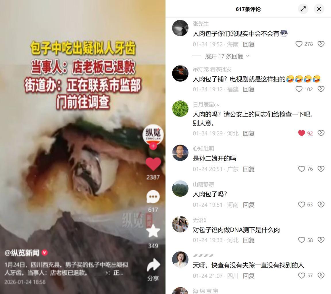 四川西充一男子买包子,妻子咬一口吃出个疑似牙齿的异物。 店老板给退了款,相关单位正介入查这事儿,网上倒先吵翻了天,有人说孙二娘开的店,有人催着查失踪人口,还有人提叉烧包电影。 这事儿越传越邪乎,根源就俩:一是大家对肉里的牙太陌生。猪牙和人牙看着像,可专业上能分清,猪臼齿咬合面沟纹更乱,人牙的釉牙本质界是贝壳状的弧形,只是煮过碎了,普通人没法一眼辨。再说猪头肉加工时,小作坊要是剔骨不彻底,残留个猪牙不算少见,只是没几个人知道这回事儿。二是这些年食品安全的信任早被磨薄了。今天听说奶粉有问题,明天见着外卖菜里有头发,碰到疑似人牙这种扎眼的事儿,本能就往最吓人的地方想,毕竟未知的恶比已知的脏更让人怕。 现在就等专业鉴定结果,可反过来想:为啥我们第一反应往往是人肉包子,却忽略了猪牙没剔干净这种可能?