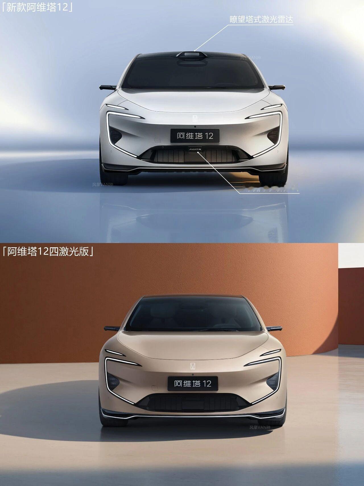 新款阿维塔12同角度直观对比解析阿维塔日前发布新款阿维塔12官图,这是继2025年10月28日阿维塔12四激光版上市后阿维塔12推出的又一改款车型。 从官图来看,新款阿维塔12在外观造型方面与2026款四激光版区别不大,前脸部分比较直观的区别是新款阿维塔12前向激光雷达由牌照框下方上移至车顶,原先前向激光雷达位置由阿维塔/AVATR字标替代。 车身侧面,新款阿维塔12比较明显的变化是翼子板处的侧向激光雷达升级至高精度固态激光雷达,侧向态势感知模组造型与新款问界M9相近。在左侧B柱上,新款阿维塔12设计有华为ADS徽标。此外,新款阿维塔12还采用半隐藏式门把手替代了老款的隐藏式门把手。 新款阿维塔12车尾相较老款没有明显变化。 另据工信部申报信息,新款阿维塔12动力参数有所变化。其中纯电双电机后驱版电机峰值功率为251/251kW,纯电三电机四驱版电机功率分别为 210/251/251kW(后置双电机);增程版采用1.5T增程器+200/200kW后置双电机组合,动力系统参数较老款有所提升。