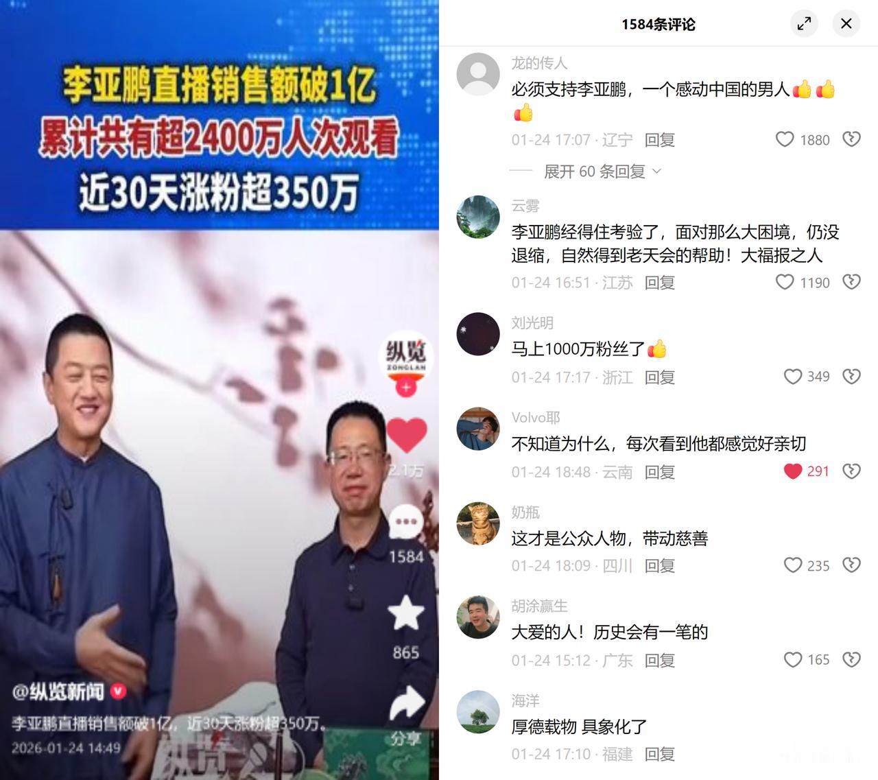 李亚鹏最近直播带茶具,30天涨了350万粉,好几场加起来销售额快到1亿了。 早几年他因为项目欠了4000万,被限高,后来卖了北京的房子,慢慢凑钱还。去年底把这笔核心债务清了,现在嫣然医院还欠着房租要腾退,他说站好最后一班岗。 现在这社会,遇事儿先躲的人太多,欠了钱删号的,做公益半路跑的,连直播都爱搞假茶叶割韭菜。李亚鹏倒好,欠了钱不甩锅,直播关了打赏,选的茶是真材实料不打碎的六宝茶。大家愿意抢着买,倒不全因为茶多贵,主要是他不逃的劲儿让人踏实,我们见多了聪明的逃避,反而稀罕这种笨笨的扛事儿。 有人留言说李亚鹏这样的人太少了,大家信的未必是什么福报,而是该扛的不躲,该守的不丢。他直播间的人气,说白了是大伙在为认真活着投票,你对生活掏真心,生活就不会亏你。 看着他直播间里的鹏友专属优惠,想起留言里那句厚德载物具象化了,原来最打动人的,往往不是什么捷径,而是咬着牙把难走的路走完的韧性。