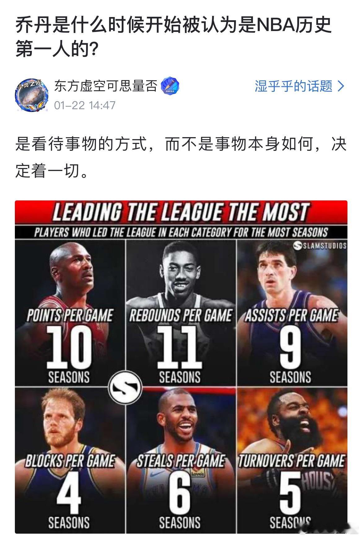 如愿 1 2026-01-25 15:11 我感觉应该是第二个三连冠之前,也就是拿到第五个总冠军的时候。本身他在第一次退役前,已经拿到三连冠、奥运冠军、得分王等等各种各样的荣誉,但那个时候只觉得他当世无敌,因为那个时候还有声音在提张伯伦、拉塞尔等老一代球星。但在他复出后,立刻拿下72胜十负的战绩,并又连续两年拿下总冠军后,我敢说当时已经没有一个人相信历史上还会有人比他强了!