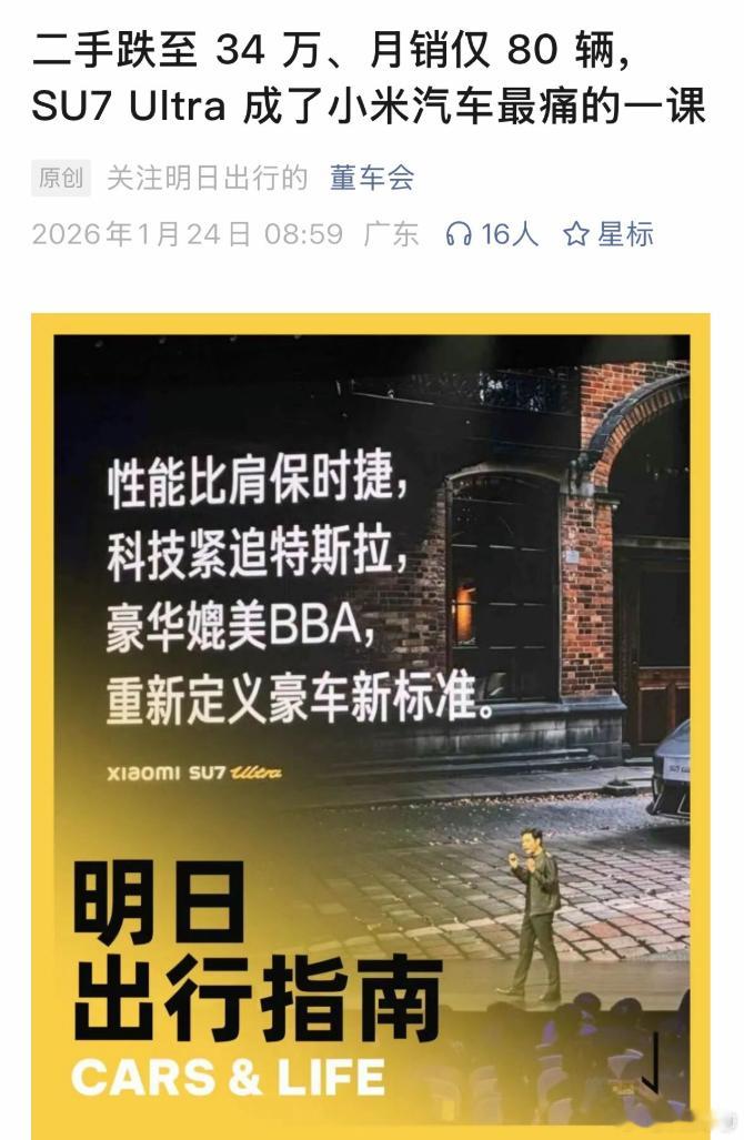 现在还有媒体写这个,百万级别的豪车保值率一年也要跌个30%左右啊?小米SU7 Ultra的保值率堪比老牌豪车,能够在负面消息不断的情况下,新势力这样的保值率已经很不错了。