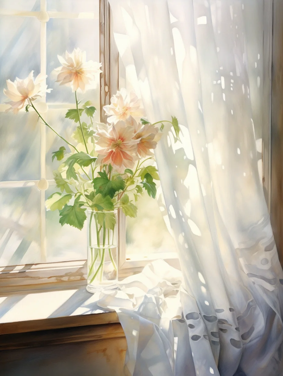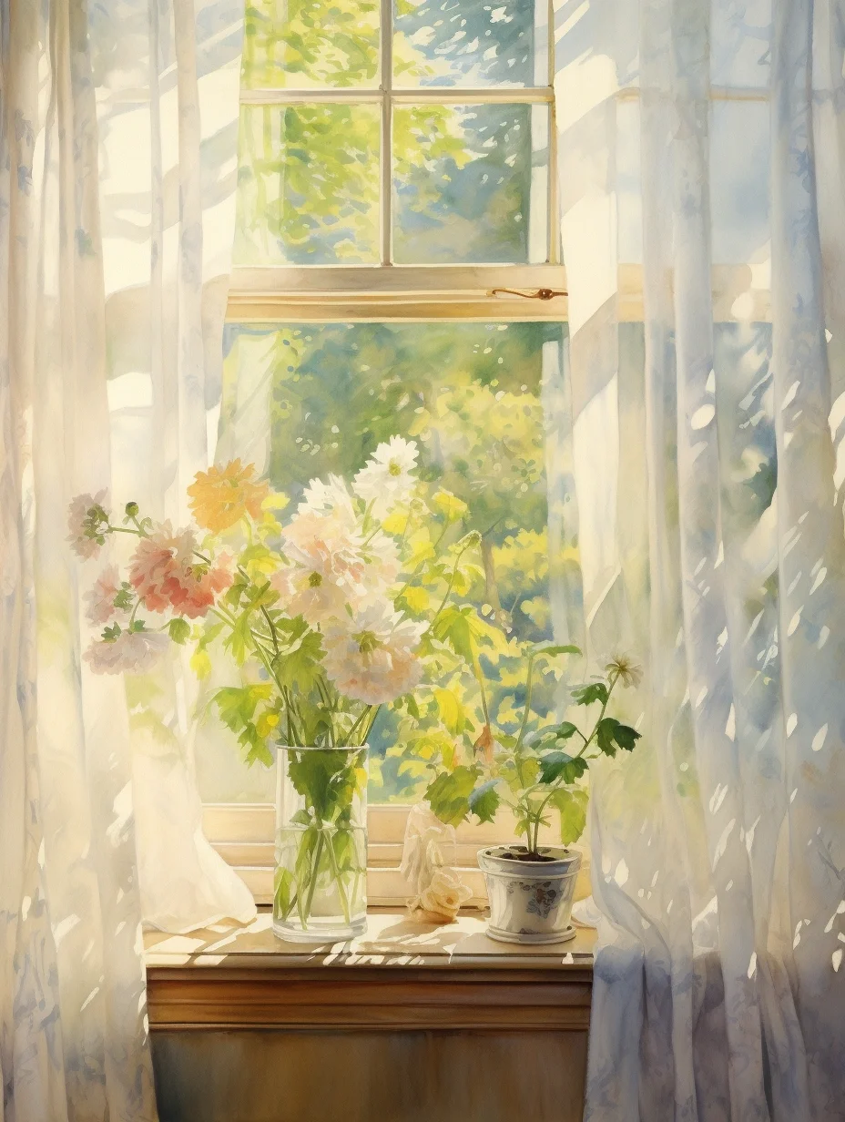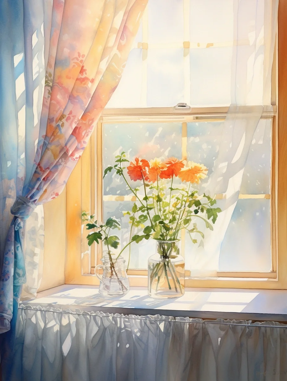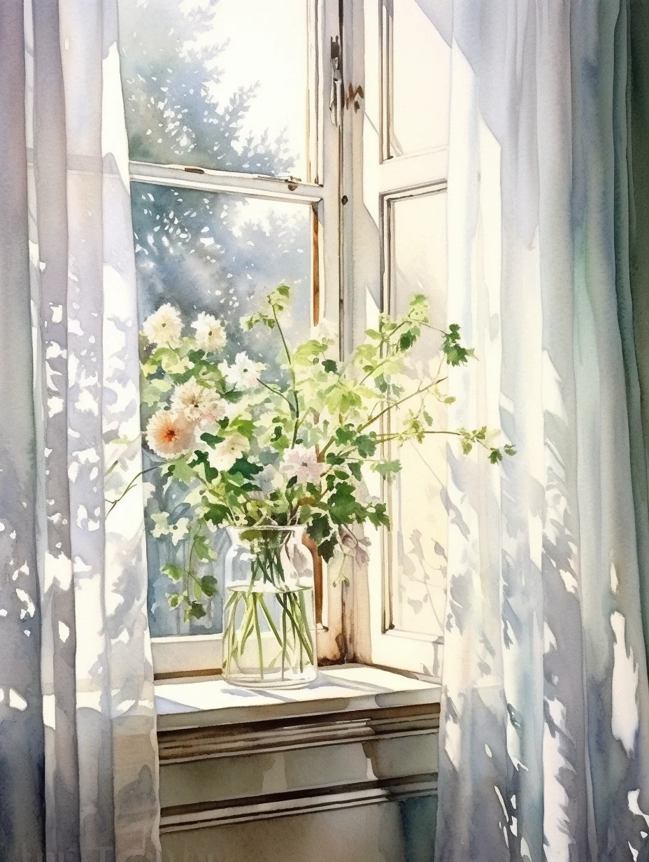 窗帘 水彩 midjourney Ai绘画