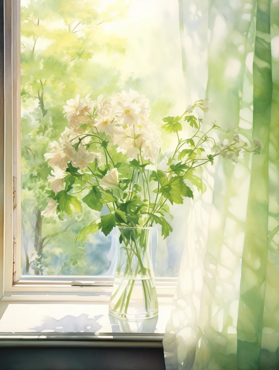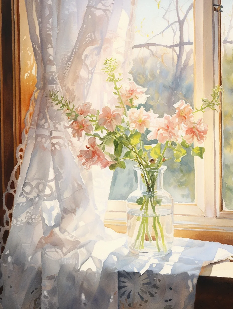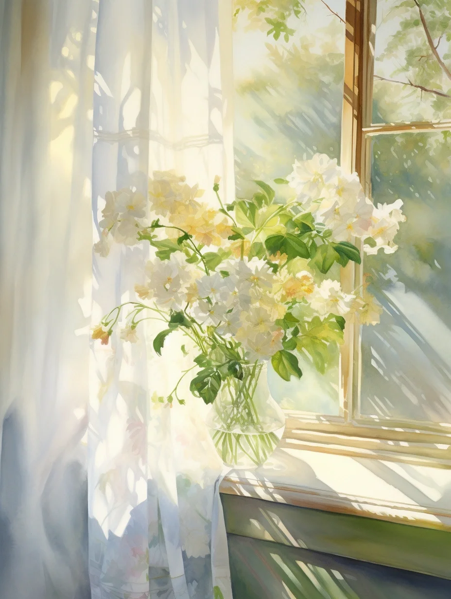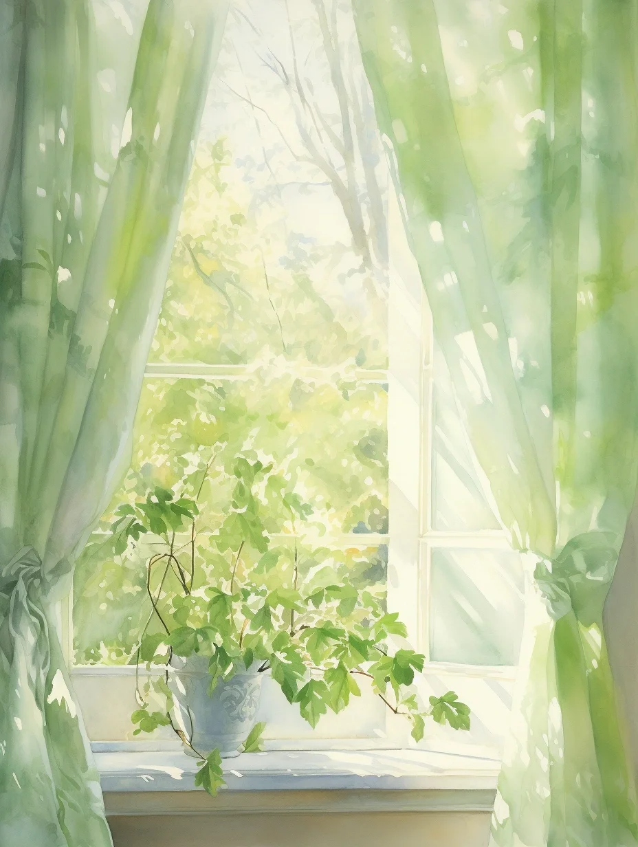 窗帘 水彩 midjourney Ai绘画