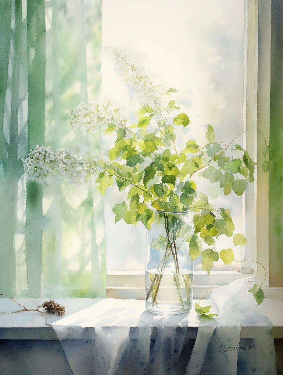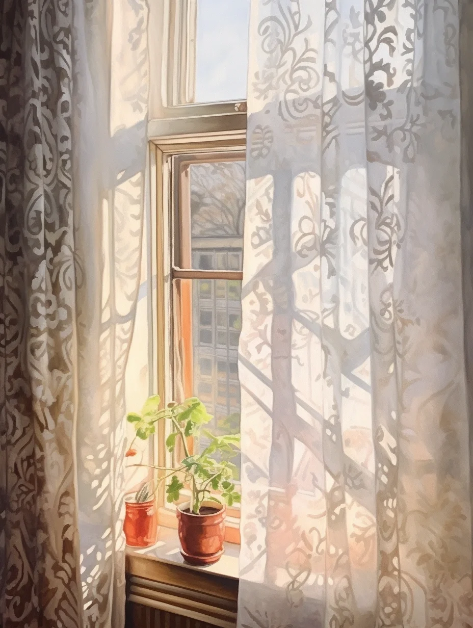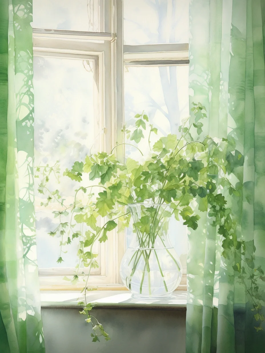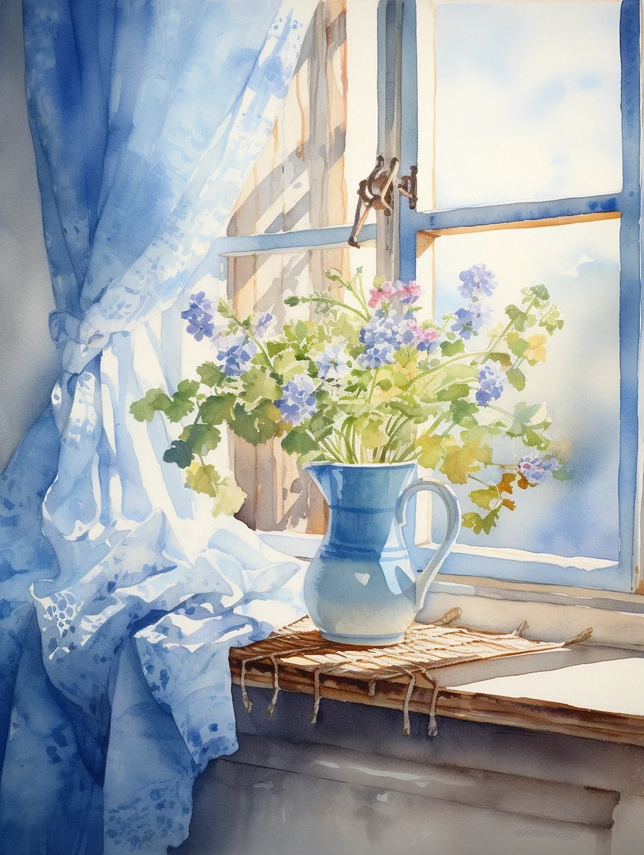 窗帘 水彩 midjourney Ai绘画