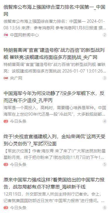 美国已经保不住日本了,俄罗斯通告了全球:中国是最大海军强国!当年美国海军横扫太平洋的时代,现在却面临一个现实:中国海军舰艇数量已经稳居全球首位,此事连俄罗斯专家都公开点明,而日本那边,美国的承诺听起来越来越空洞。 麻烦看官老爷们右上角点击一下“关注”,既方便您进行讨论和分享,又能给您带来不一样的参与感,感谢您的支持! 曾经的美国海军在太平洋上所向披靡,凭绝对的舰艇规模和战力坐稳海上霸主的位置,可如今这个格局早已被彻底打破。中国海军的快速发展让世界侧目,舰艇数量稳稳占据全球首位,就连俄罗斯的专家和权威机构都公开证实这一事实,而美国对日本的安全承诺,也在自身海军的颓势中变得越来越空洞。 美国国防部发布的 2024 版《中国军力报告》里,明明白白列出了中美海军的舰艇数据,中国海军现役作战舰艇数量超过 370 艘,美方还做出预测,2025 年这个数字会接近 400 艘,到 2030 年更是会突破 435 艘。反观美国海军,现役舰艇仅有约 290 艘,还深陷老舰维修延误、新舰交付拖沓的困境。 这份差距并非凭空出现,而是中国海军一步一个脚印拼出来的。2023 年到 2024 年这两年间,中国海军新服役的大型水面舰艇排水量累计超 10 万吨,2023 年有 11 万吨舰艇下水,2024 年也有 7 万多吨新舰入列,造舰和入列速度在全球都首屈一指。 作为中国首艘电磁弹射型航母,福建舰的进展一直备受关注,该舰于 2025 年 11 月 5 日正式入列,完成海试后加入中国海军序列,让中国的航母战力再上一个新台阶。航母的发展是远洋战力的核心,而驱护舰的规模则是海军基础实力的体现。 055 型万吨大驱作为中国海军的主力驱逐舰,截至 2024 年第一批次 8 艘已全部服役,这款兼具防空、反舰、反潜能力的大型舰艇,成为中国海军水面舰艇的中坚力量。随着新舰不断入列,中国海军的远洋能力也在持续提升。 如今的中国海军早已不是只守在近海的力量,常态化的远海护航任务守护着国际航运通道的安全,远赴海外的国际医疗援助也展现出大国海军的担当,从装备规模到实际行动,中国海军的远洋作战和海外投送能力都得到了实打实的提升。 中国海军的发展成果,不仅被美国国防部的报告印证,也得到了俄罗斯方面的权威认可。俄罗斯科学院世界经济和国际关系研究所发布的海上强国综合潜力排名中,直接将中国排在全球首位,占比达到 15.9%,美国则以 15.5% 的占比位居第二。 俄罗斯专家更是基于中美双方的公开数据,明确指出中国水面舰队的规模已经超越美国,成为全球最大的海军力量。这份排名并非只看军事舰艇,还综合了民用海上活动、海洋资源开发等 40 类统计数据,客观反映了中国的海上综合实力。 就在中国海军稳步发展的同时,美国的造舰计划却屡屡碰壁,特朗普政府曾高调宣布打造 “黄金舰队”,还提出要在两年半内建造 20 至 25 艘 “特朗普级” 新型战列舰,声称这款战舰战力远超现有舰艇,是扩充美国海军规模的核心举措。 可现实却给了这份计划一记重拳,美国当下的造船业早已不复当年之勇,订单积压、熟练工人短缺的问题积重难返,再加上大型舰艇设计链路断档、研发经费不足等问题,让 “特朗普级” 战列舰的建造计划沦为了一场政治表演,首舰计划 2030 年才开始建造,此前的工期承诺根本无从谈起。 美国海军自身的发展陷入困境,直接影响到其在全球的兵力部署,西太平洋地区能投入的资源持续减少,这让高度依赖美国安全保护的日本陷入了焦虑。为了强化自身军力,日本将 2025 财年的防务预算提升至创纪录的 8.7 万亿日元,试图靠自己的力量弥补安全缺口。 日本的这份防务预算,重点投向了高超音速导弹、先进舰艇等军事领域,一心想要提升自身的攻防能力,可日本的军工体系长期依附于美国,核心技术和装备供应都被美方掌控,想要短时间内实现军力自主,难度可想而知。 一边是美国的安全承诺越来越空洞,西太平洋的军事存在不断弱化,一边是自身军力发展受限于体系短板,日本的安全焦虑持续升级。而这一切的根源,都是美国海上霸权的衰落和中国海军的崛起,改变了西太平洋的海上力量格局。 曾经美国靠海军力量在西太平洋一家独大,如今中美海军的规模差距不断拉大,中国海军用实打实的发展成果,打破了美国的海上霸权垄断。俄罗斯的公开认可,更是让世界看清了当下的海上力量格局,美国早已无力维持昔日的霸主地位。 从近海防御到远海护卫,中国海军的发展始终围绕着维护国家主权、安全和发展利益,也为国际海洋安全和贸易畅通贡献着中国力量。而美国试图靠造舰计划挽回颓势、靠军事同盟维持霸权的做法,在时代发展的浪潮中,终究只会是竹篮打水一场空。
