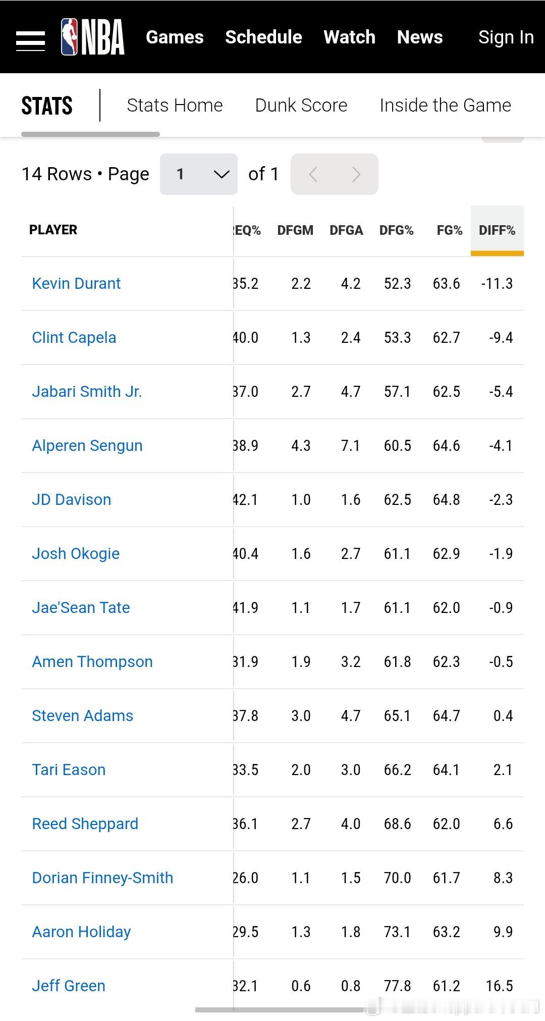 火箭:6英尺内(篮下终结区)谁的护框效果好(图1)DIFF% = 对手在你主防下的近筐命中率(DFG%)− 对手平均近筐命中率(FG%)✅ 负数=让对手更铁(护框/干扰有效)❌ 正数=对手更准(近筐更好终结)杜兰特:-11.3%(断层级)近筐直接把对手命中率压下去,属于“你看见他就得改出手方式”的那种威慑。卡佩拉:-9.4%典型护框中锋价值:站位+对抗+干扰,能把篮下变成“禁飞区”。贾巴里:-5.4%机动护框+补位,协防到位时很香申京:-4.1%不一定是飞天盖帽型,但站位、手活、预判能让对手终结更难受。申京护框次数是火箭球员里最多的(每场7.1次)。火箭休斯顿火箭