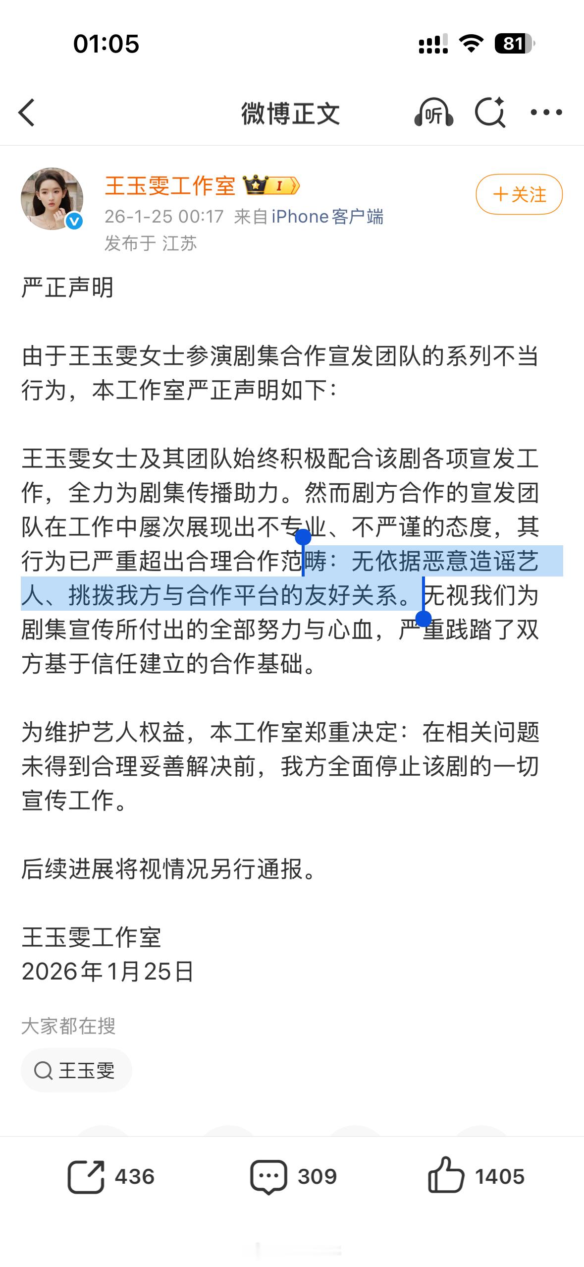 王玉雯陈星旭主演的电视剧《突然的喜欢》今天营销卫生巾切片翻车,刚刚王玉雯工作室说宣发团队不专业,会停止宣传,并否认了是切片翻车。