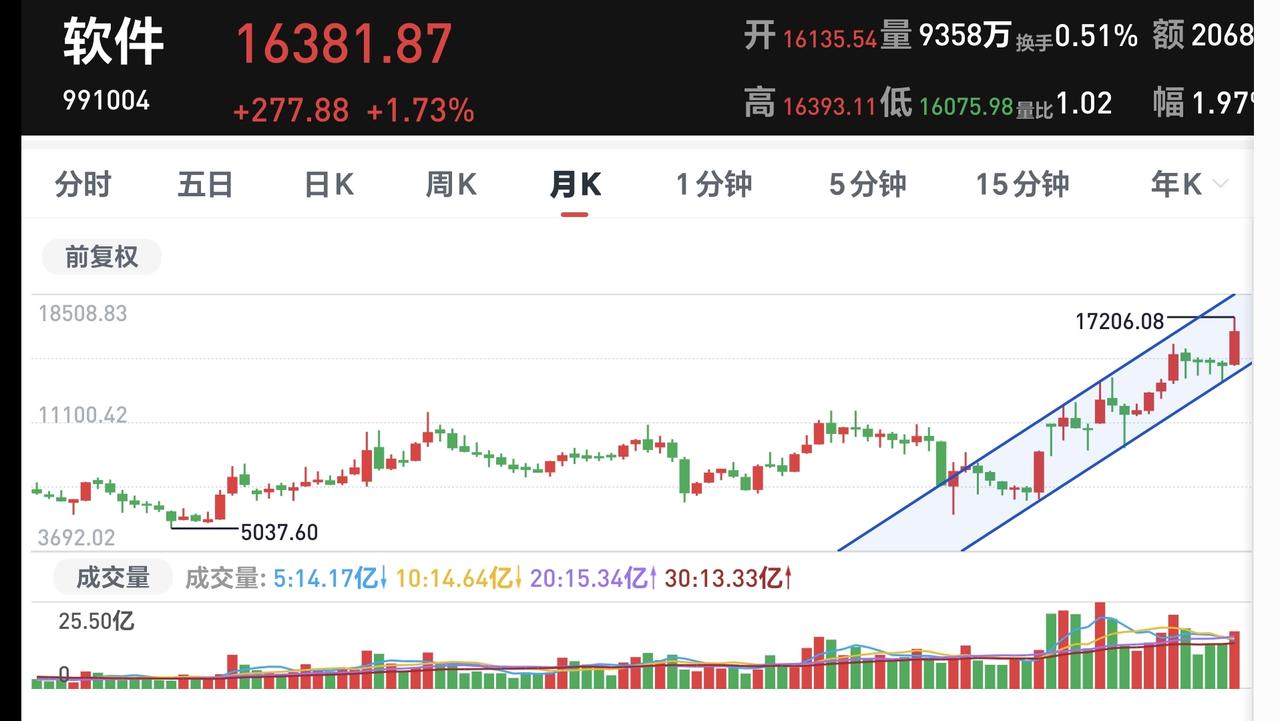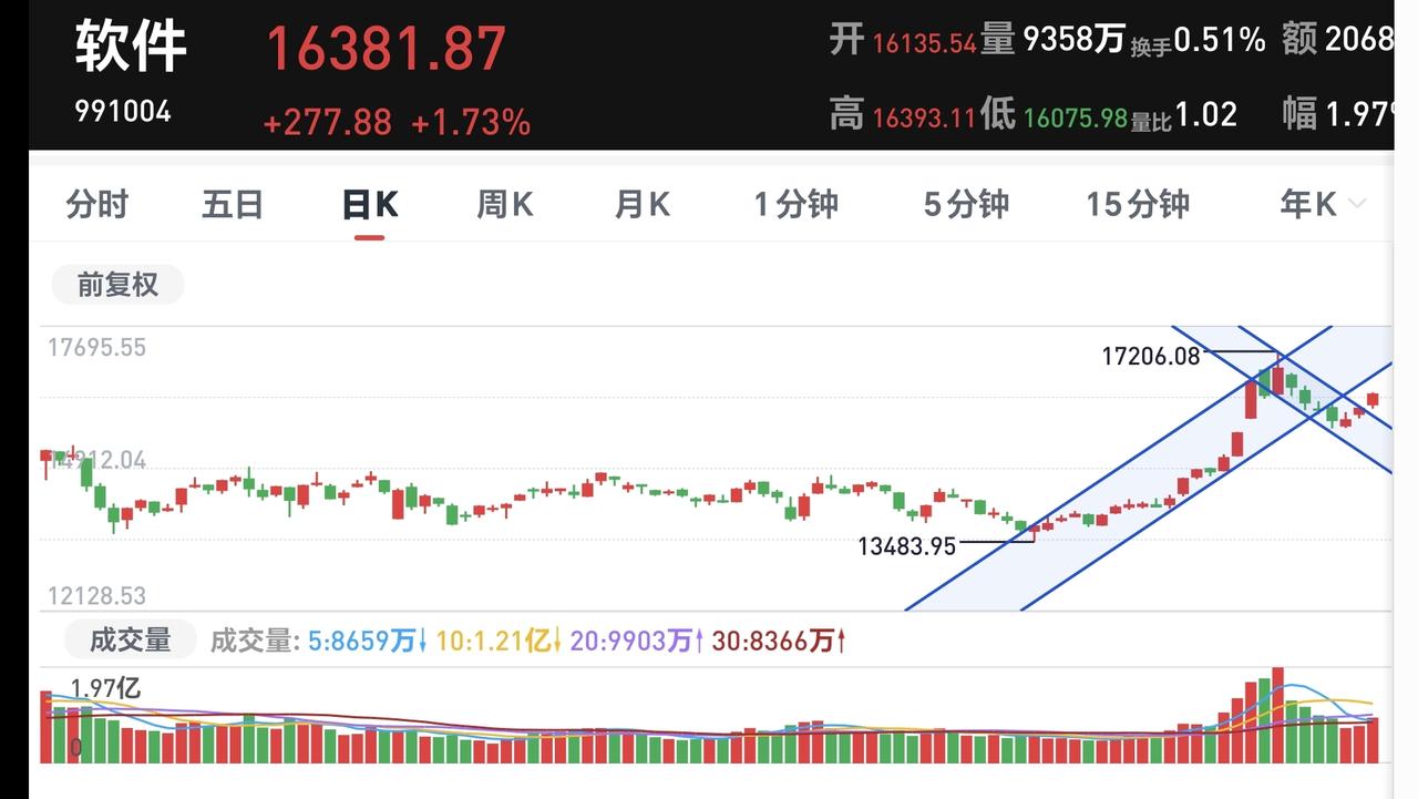 基金:AI应用板块应该怎么办 AI应用板块是一个新的板块名词,这个板块其实就是软件板块,周五上涨了1.57%,是连续第三个交易日上涨,这个板块里面散户也是比较多,持有人数在所有板块当中排名第8位。 周五加仓人数排行榜见下面的截图3,持有人数排行榜见下面的截图4,加仓人数最多的是永赢信息产业智选混合,持有人数最多的是德邦稳盈增长灵活配置。 看下面的截图5这是软件板块日K线图,星期五的上涨突破了我画的超短期的下跌通道上轨,但这样的突破不应该成为我们的进场点,因为,这是日线级别,也是超短线的下跌通道,我们玩基金的人,绝大部分都是长线操作,长线操作就不应该以日线级别来作为标准,最少应该以周线级别的走势来作为进场和离场的标准。 看下面的截图6,这是软件板块周K线图,现在的位置处于周线级别上涨通道中间的地方,距离上涨通道的上轨线和下轨线差不多远,这样的情况之下,短期的小幅度上涨和小幅度下跌都改变不了周线级别的上涨趋势,如果你以周线级别作为操作依据,这个板块近期没有进场点,也没有离场点,只有上涨到上涨通道上轨线附近的时候,你才可以考虑一下要不要部分止盈,只有下跌到上涨通道下轨线附近的时候,你才可以考虑一下要不要分批进场,如果你以周线级别作为操作依据,你就不会过分在意某一天的涨和跌,你的持有心态会变得好很多。 看下面的截图7,这是软件板块更大周期的K线图,这是月K线图,如果你以月线级别周期作为操作依据,你甚至可以每个星期看一下涨跌,都没有必要每天来看它的涨跌,你如果能够这样玩基金,你就会很轻松,其实玩基金本来就是一件很轻松的事情,只是有很多人把简单的事情复杂化了,只是许多人认为自己可以追涨杀跌。 评论,点赞,转发和分享是你的美德,点个赞,一秒钟的事情,评论一下,也就是十秒,相比于我写文章的30分钟,你觉得你最起码是不是应该点个赞,然后再写一个评论夸我几句。