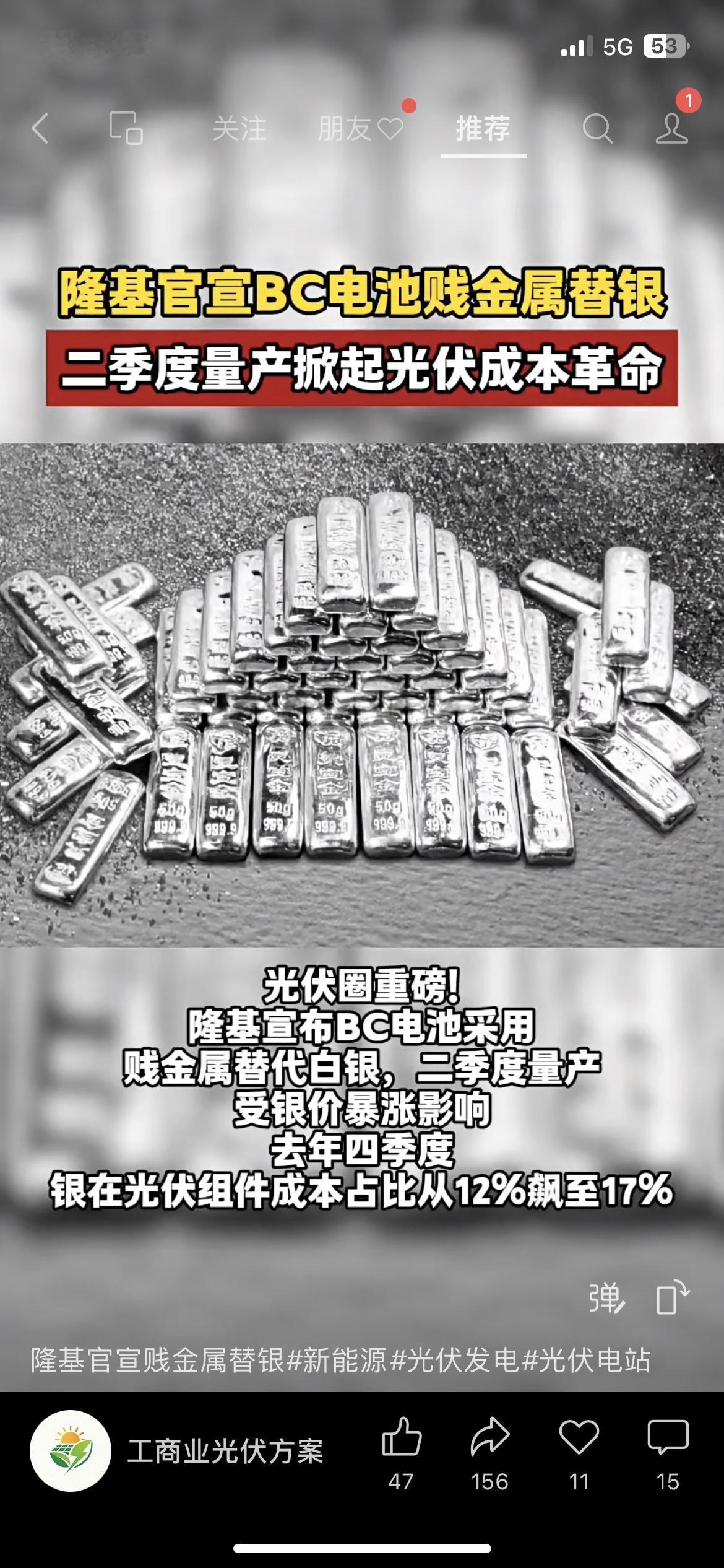 隆基官宣大动作!BC电池贱金属替白银,2026二季度量产,光伏成本大跳水! 光伏行业迎成本革命,产业链机会藏不住了!你会关注规模10亿+的光伏ETF吗? 隆基绿能 光伏技术 硬科技 财经热点 市场有风险,投资需谨慎