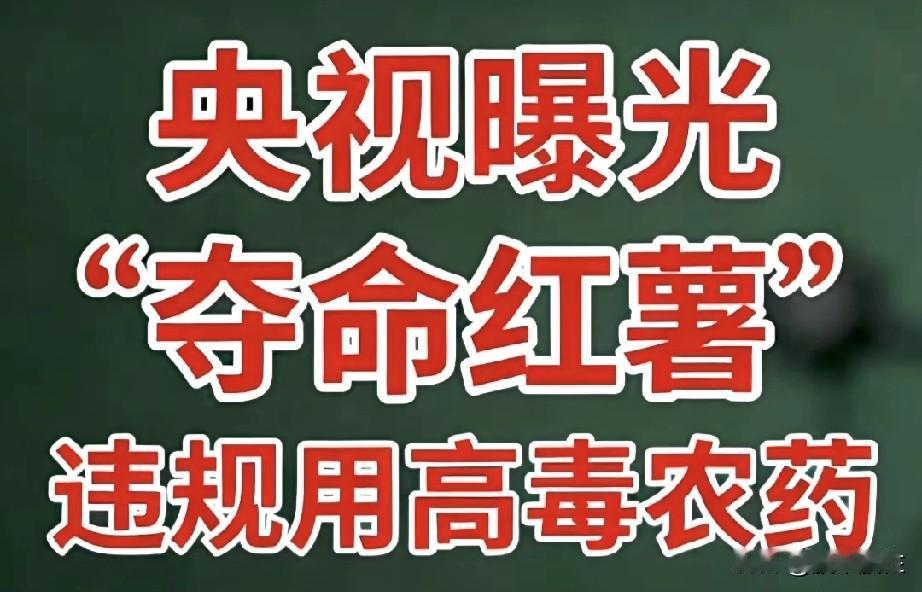 自己吃没药的, 卖出去的都是有毒的。 这是多少食品安全存在的现状? 云南建水炸锅了,薯农为卖相用高毒禁药,毒红薯惊现田间。感谢央视记者的报道,彻底打掉了整个产业链。避免全国更多的老百姓受毒害。 食品安全问题必须用重典,让违规者付出无法承重的代价。这么多年来食品安全反复曝光出各种问题,问题出在哪?究竟掺杂了多少利益? 想做好食品安全这件事并不难,就是看下的决心大不大?力度大不大?我相信广大消费者是支持的,维护人民群众的身体健康才是最大的成绩。