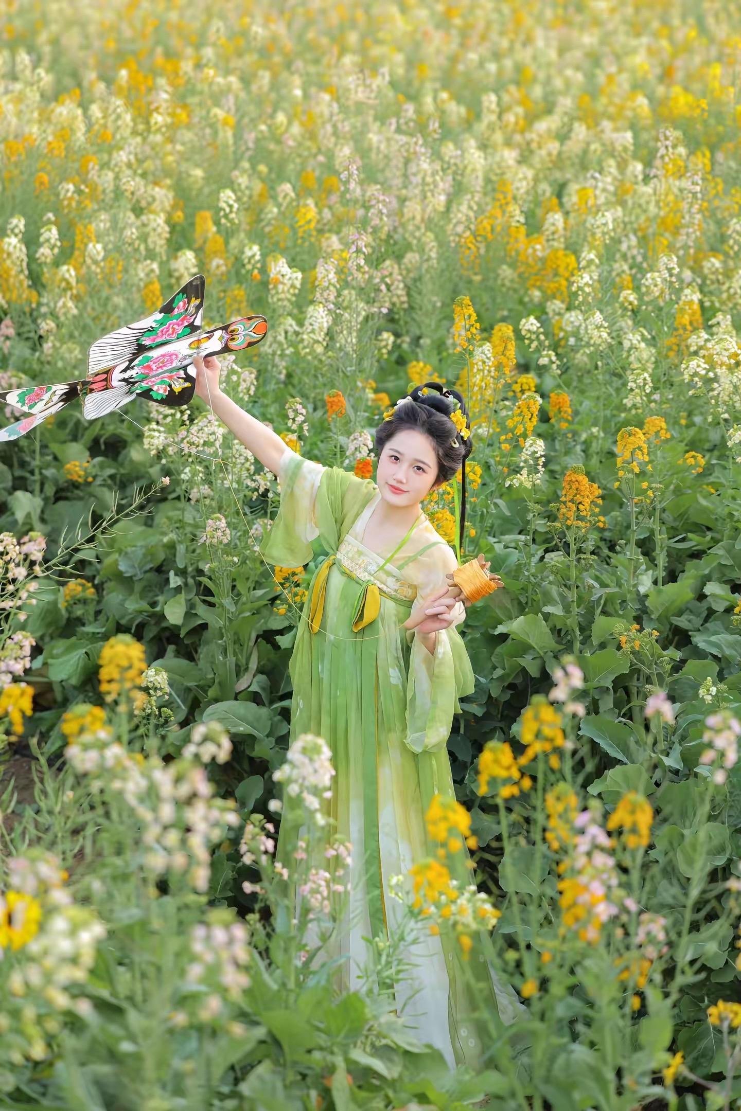 春知晓梦不觉恰似你我当年。陈都灵造型仿拍 嘟嘟这个黄绿色的造型和油菜花太配了!