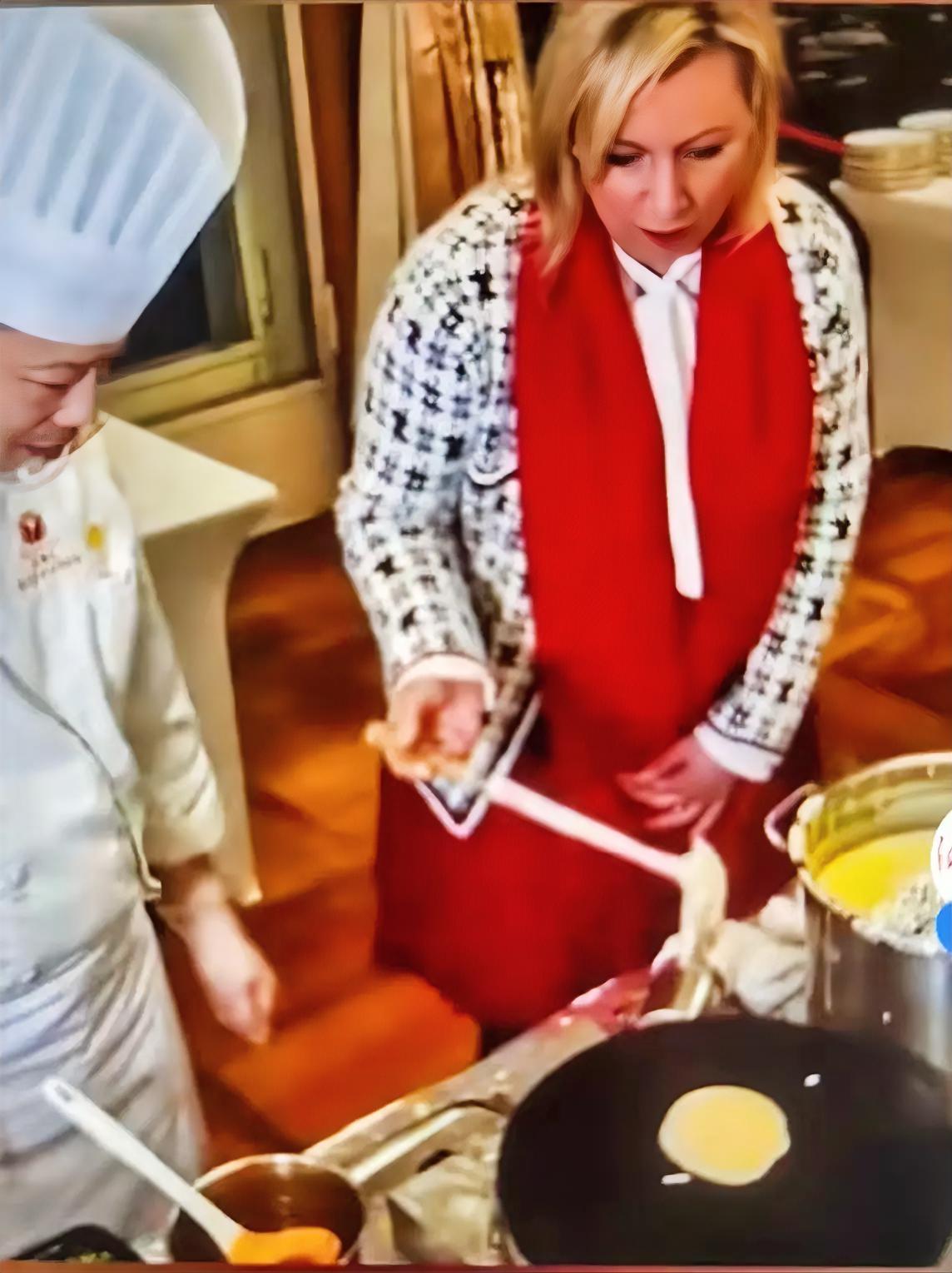 我查了一下扎哈罗娃, 才知道她不仅是普京“宣传机器人” 还有这么一层背景!难怪让她摊煎饼呢! 西方媒体总爱给她贴标签,却没人深挖过,这位言辞犀利的俄外交部铁娘子,童年大半时光是在北京胡同里度过的。 父母都是“东方学”专家,她6岁随外交官父亲迁居北京,一住就是12年,东直门的胡同、北海公园的白塔、什刹海的冰面,都是她童年相册里的风景,连一口地道的京腔,都是当年和胡同里的小伙伴争论游戏规则练出来的。 还不仅能熟练使用筷子吃炸酱面,更把童年记忆化作学术深耕,副博士论文选题竟是《中国人如何过农历新年》,把包饺子、挂灯笼这些烟火气的民俗,变成了严谨的学术研究。 办公室里至今摆着上世纪80年代北京街景老照片,珍藏着六岁生日时买的红绸牡丹扇,每周还会坚持阅读《人民日报》国际版,这份中国情从未褪色。 更让人意外的是,她的刚柔并济。外交场上,她是让西方记者忌惮的“话语之刃”,怼马克龙“不可容忍”的涉俄言论,嘲德国政客“少吃肉抗俄”的提议荒谬,用“信息恐怖主义”定性西方舆论攻击,每一次发声都精准有力 。 但转身就能在中国驻俄使馆活动中“摊煎饼”,金黄的饼皮刷上酱料,比不少中国人做得还地道,用最朴素的烟火气诠释“中俄一家亲”。 她也从不是什么“宣传机器人”,而是带着双重文化底色的外交智者。会穿旗袍录制新春祝福,用中文朗诵《元日》。 会在普京生日时送上中国剪纸“福”字,一句京腔“过年好”逗笑总统。哪怕没能如愿担任驻华大使,也始终把中俄关系视作外交优先方向,坚定表态“台湾是中国不可分割的一部分”。 而那些嘲讽她强硬的人,或许不懂,她的底气,一半是来自对祖国的忠诚,一半则是跨越文化浸润的通透。你们喜欢扎哈罗娃吗?玛利亚扎哈洛娃 扎哈罗娃真的有俄式幽默吗?