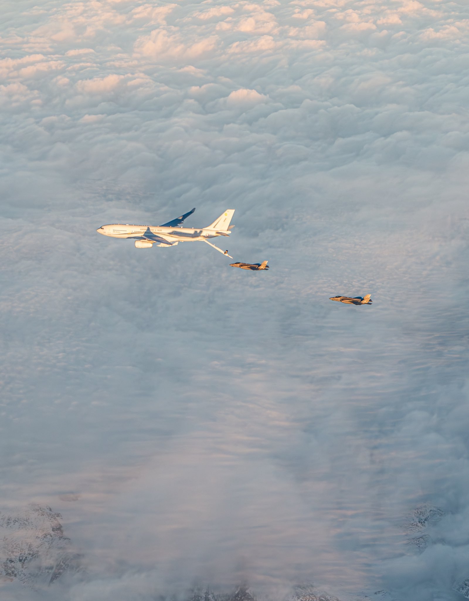 飞扬军事 丹麦空军F-35战机和法国空军A3330空中加油机在格陵兰东南部进行空中加油演练