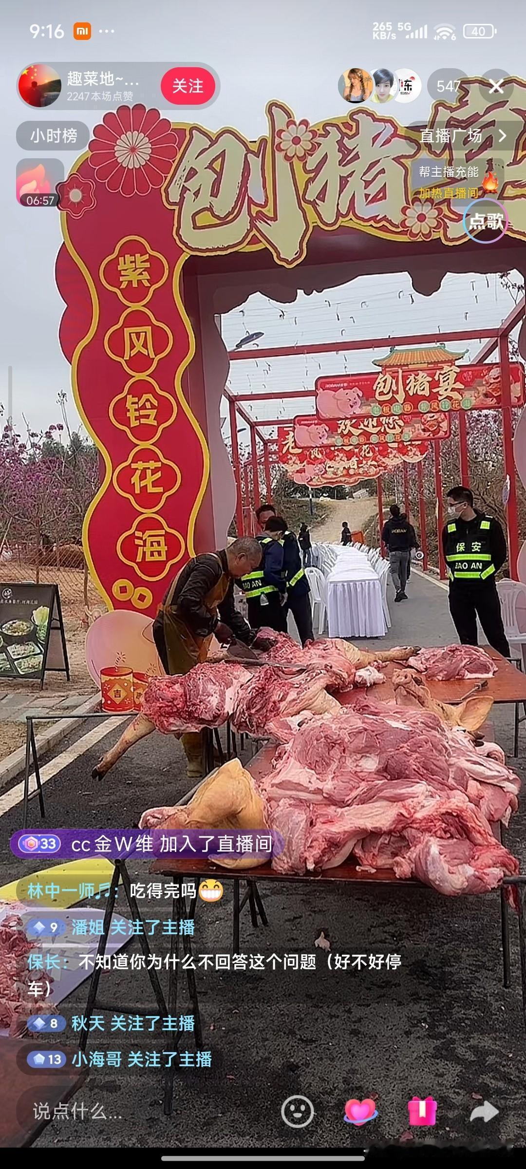 佛山现“刨猪宴”硬核年味! 半头猪直接摆上桌,网友:这才是过年该有的样子 刚刷到佛山紫风铃花海这场刨猪宴直播,直接给我看饿了!半头猪大卸八块摊在长桌上,油亮的肉皮带着热气,师傅手起刀落的劲儿,隔着屏幕都能闻到肉香。 这种在南方农村快失传的年俗,居然在花海景区里重现了。评论区全是“想回外婆家吃刨猪汤”“这才是接地气的年味”。比起城里精致的年夜饭,这满桌生猛的猪肉、滚烫的猪杂汤,才是刻在DNA里的过年仪式感。 有人说这是“土味营销”,但我觉得,能把快要消失的乡村年俗搬回大众视野,让年轻人知道“原来过年还能这么热闹”,比什么都强。你觉得这种硬核年味,该不该多搞点?