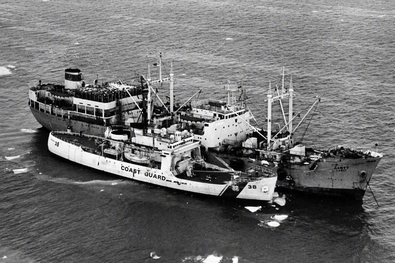 照片中的历史 苏联渔业加工船基地“拉穆特”号,旁边停泊着美国海岸警卫队的破冰船“斯托里斯”号(WAGB-38)。1972年1月,“斯托里斯”号在白令海距美国圣马修岛9.5英里处扣留了“拉穆特”号基地船和拖网渔船“科利万”号,声称其违反了美国渔业管辖区规则(当时美国仅将3英里以内海域视为领海,而渔业管辖区则设定为12英里)。随后,苏联船只被押送至阿达克岛。在安克雷奇对被扣船只船长进行审判并处以25万美元罚款后,苏联船只被归还。烽火问鼎计划