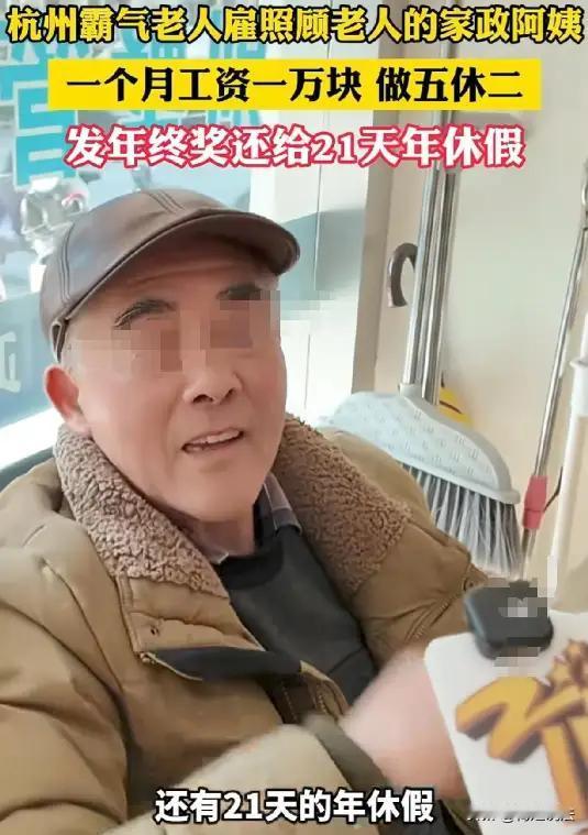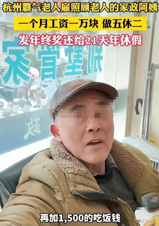 杭州大爷招家政阿姨,待遇直接卷疯!月薪1万+月补1500餐费,双休+年终奖+每年