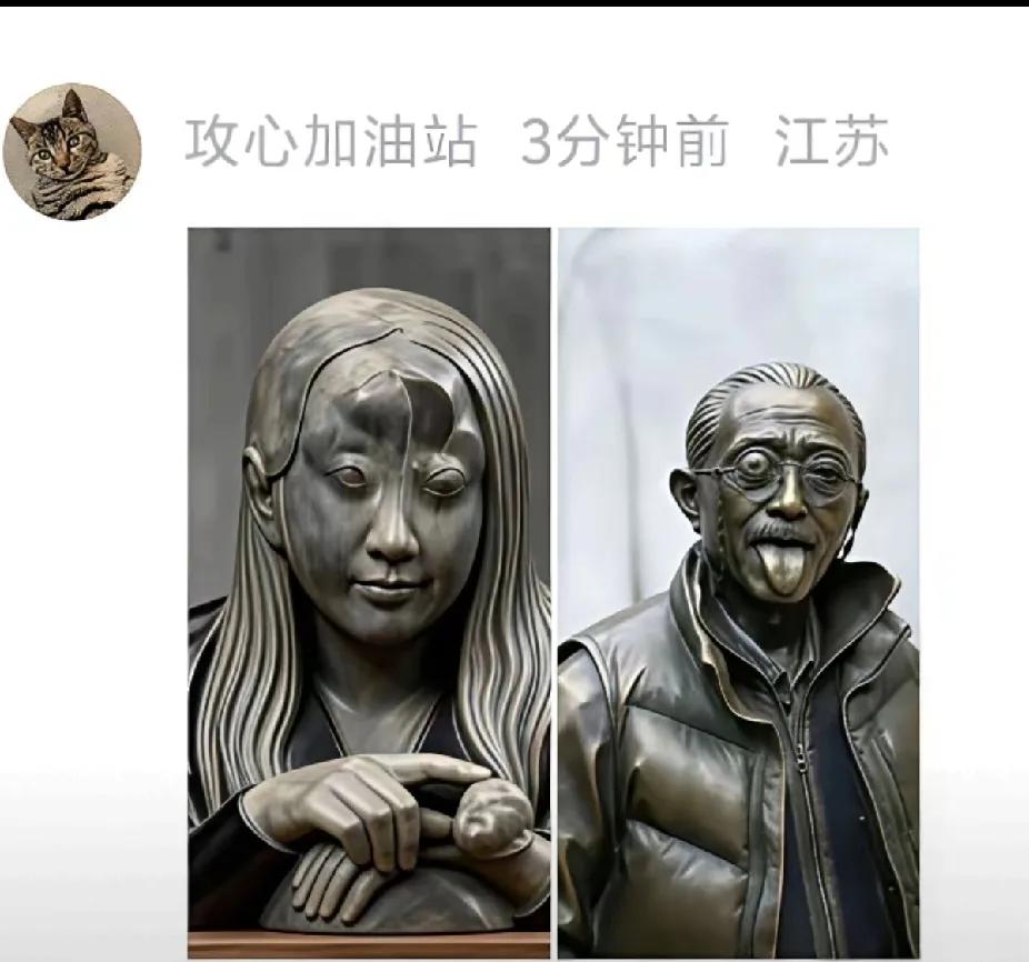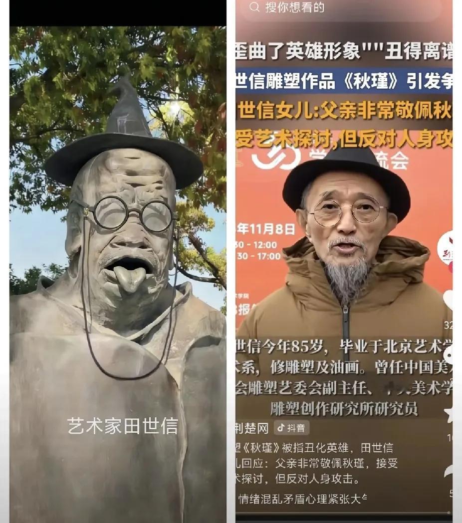 田世信女儿这波双标操作太膈应人,直接惹得网友愤懑不已,也难怪大家非要持续给田世信塑像!一边骂网友的塑像行为是人身攻击,一边惋惜老子铜像被拆,称其为精美艺术品,这般前后矛盾,任谁听了都火大。 她的逻辑简直离谱,自家爹的夸张扭曲风格是艺术,网友照着同款风格塑她爹,反倒成了恶意攻击,典型的只许州官放火。她只顾护短惋惜自家作品,却从不反思老子塑像为何引发全网争议,无视大众审美感受,这份自私才是矛盾的根源。 网友本就是以彼之道还施彼身的反讽,经她这波火上浇油,反倒更坚持塑像——既然她夸这风格是艺术美,那自然该让田世信也享这份“艺术待遇”。艺术从不是孤芳自赏,容不得这般双标护短,不想着反思作品问题,反倒指责网友,只会让矛盾越积越深!
