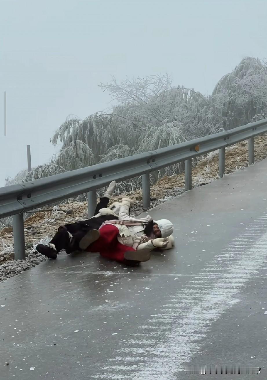 桂林摩天岭冰面上演“人仰马翻”,笑到打鸣! 刚刷到桂林摩天岭这段视频,直接笑到肚子疼!两个姐妹本来想拍个美美的雾凇大片,结果在结冰的山路上直接“滑跪”,最后双双躺平,完美诠释了什么叫“人仰马翻”。 南方孩子对冰雪的执念,真的刻进DNA里了。明明路滑得像抹了油,还是硬着头皮往前冲,结果帅不过三秒就翻车。评论区全是同款经历:“上次去衡山也是这样摔的”“南方人看雪,不要命的”。 有人说这是“作死”,但我觉得,这才是南方人看雪的真实写照——为了那点浪漫,摔得四脚朝天也值了!你有没有过为了看雪/雾凇,在冰面上社死的经历?评论区比惨开始!