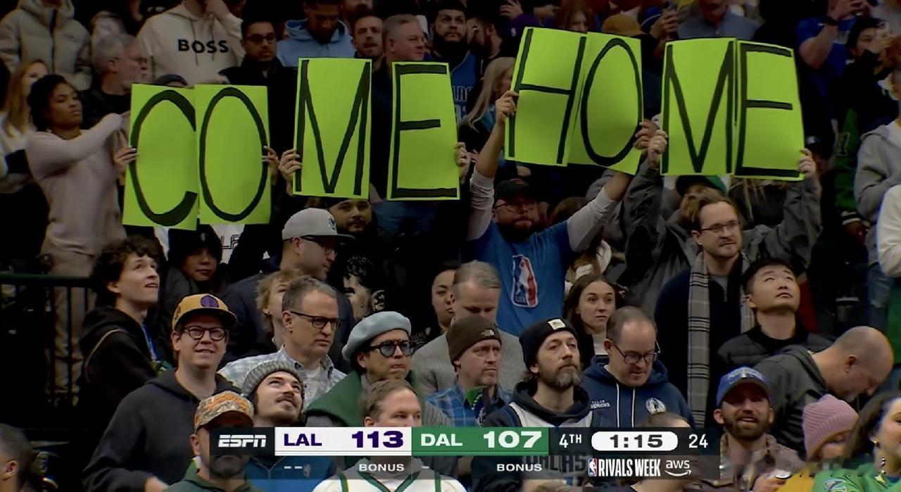 感人一幕!独行侠球迷对东契奇仍然念念不忘! 今天,独行侠队坐镇主场迎战湖人队,东契奇再度返回达拉斯面对老东家。虽然距离交易已经过去了差不多一个赛季,但独行侠队球迷依旧对东契奇念念不忘,他们在主场举起“回家吧”的横幅,希望东契奇有朝一日可以回到独行侠队,这一幕十分温馨。 东契奇为独行侠队效力了6个半赛季,留下了太多美好的回忆,在诺维斯基退役后,他迅速成为了达拉斯的新宠儿,深得达拉斯篮球迷的喜爱。在被前总经理尼克-哈里森交易至湖人队后,独行侠队主场频频响起“解雇尼克”的口号,为东契奇撑腰。随着尼克-哈里森被解雇,库班重新回到管理层,东契奇或许会有重回独行侠队的那一天。