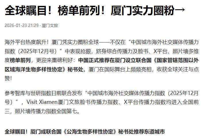 美国人前脚刚把“群”退了,中国后脚就把“主场”搭起来了!厦门这次出击,堪称一记漂亮的“回马枪”。当华盛顿还在为了这点会费斤斤计较时,我们已经准备在东南沿海建立起一个新的全球海洋治理中心。这不仅仅是地理位置的优越,更是综合国力的降维打击——从深海科研到执法能力,中国已经具备了为全球公海“定规矩、管秩序”的绝对硬实力。 别把这事儿想简单了,这可不是为了在厦门多挂一块联合国的牌子,这是一场争夺地球60%面积“立法权”的顶级博弈!公海以前是谁的天下?是西方船队的狩猎场。 蓝鳍金枪鱼被捞到快绝种,深海矿产被挖得像月球表面,谁管了?没人管!因为规则是他们定的,漏洞是他们留的。 就说这场博弈的大背景,去年1月美国刚宣布退出31个联合国相关实体,其中近20个涉及环境、海洋和可持续发展领域,包括联合国水机制等关键平台,说白了就是不想再为全球治理投入,还想继续凭着霸权在公海为所欲为。 可华盛顿这边刚撂挑子,全球公海治理的“新规矩”就落地了——2026年1月17日,BBNJ协定正式生效,这个覆盖全球2/3以上海洋面积的国际文书,终于填补了公海生物多样性保护的法律空白,把过去“谁拳头硬谁说了算”的野蛮逻辑,拉回了法治轨道。 可能有人不清楚BBNJ协定到底管啥,说白了就是给公海立了四条硬规矩:划定海洋保护区、强制评估人类活动对海洋的影响、分享海洋基因资源的收益、帮助发展中国家提升治理能力。 在这之前,公海就是个“三不管”地带,西方强国靠着先进船队,一边疯狂捕捞珍稀物种、开采深海资源,一边把污染风险转嫁给全世界。 就像蓝鳍金枪鱼,因为西方长期无节制捕捞,一度濒临灭绝,可因为没有统一的国际约束,只能眼睁睁看着生态被破坏。而深海采矿留下的坑洞,不仅破坏海洋栖息地,还会导致海水酸化,这些账过去从来没人来算。 美国当然清楚这个协定的分量,可它宁愿当“局外人”也不愿受约束,反而变本加厉在公海耍霸权。仅2025年底到2026年初一个多月里,美国就在加勒比海多次拦截扣押他国油轮,以“违反制裁”为名肆意妄为,完全无视《联合国海洋法公约》关于登临权的规定,把公海当成了自己的“后花园”。 这种“合则用、不合则弃”的霸权逻辑,恰恰暴露了西方过去治理公海的本质——不是为了守护人类共同财产,而是为了独占利益。 中国之所以敢接下这个“主场”,靠的不是一时冲动,而是实打实的硬实力。从深海科研来看,我们的载人潜水器能探入万米深海,获取的海洋基因资源数据位居世界前列,这为BBNJ协定里的资源保护和惠益分享提供了技术支撑;从执法能力来说,中国海警船队早已实现常态化远洋巡航,能有效应对公海非法捕捞、环境污染等问题,为规则落地保驾护航。 而选择厦门,更是深思熟虑的结果,这座东南沿海城市不仅有优良港口和完善的海洋产业基础,更靠近南海等重要海域,地理位置得天独厚,既能辐射周边,又能对接全球,成为全球海洋治理的枢纽再合适不过。 况且中国推动的海洋治理,从来不是搞“一言堂”,而是真正践行“人类共同继承财产”的理念。BBNJ协定里明确要求,海洋基因资源的商业收益要公平分配给全人类,尤其是发展中国家,这和西方过去“谁开发谁独占”的模式形成了鲜明对比。 中国批准协定后,还主动推动技术转让和能力建设,帮助小岛屿国家提升海洋保护能力,这种开放包容的态度,让越来越多国家认可中国主导的治理框架。 这场全球海洋治理的博弈,本质上是文明模式的较量——是霸权主义的“丛林法则”,还是共建共享的“法治共识”。美国退群看似是放弃了部分权益,实则是失去了参与制定未来海洋规则的资格;而中国在厦门搭建的不仅是一个治理中心,更是一个公平正义的全球合作平台。 当西方还在纠结于眼前的利益得失时,中国已经站在人类共同利益的高度,为地球的蓝色家园划定了可持续发展的方向。 未来,随着厦门全球海洋治理中心的落地,BBNJ协定的各项规则将逐步落地生根,公海将彻底告别“无人管”的乱象。 而这场漂亮的“回马枪”,也让世界看到,中国的崛起从来不是挑战现有秩序,而是以实力和担当,推动建立更公平、更合理的全球治理体系,让海洋真正成为全人类的共同财富,而非少数国家的霸权游乐场。 信息来源: 1. 新华网《热点问答|美国一口气退了哪些群》(2026年1月8日);