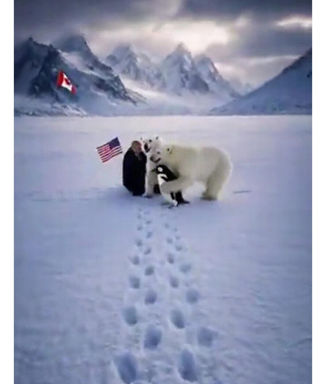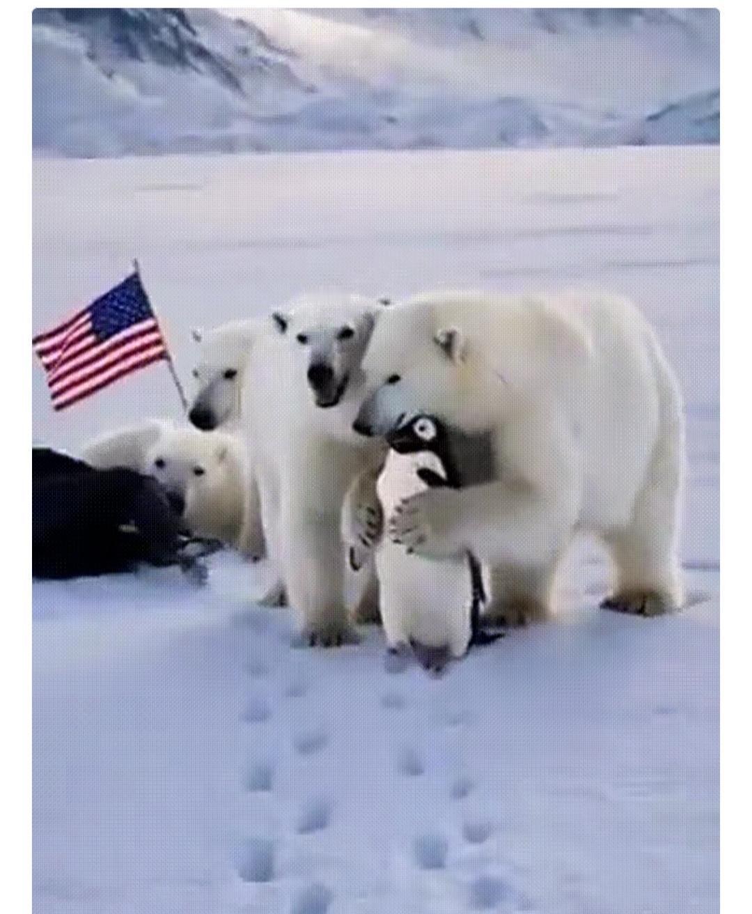 真是没想到 短短几分钟 北极熊保护企鹅🐧的视频彻底的爆火! 就在早上白宫发出特朗普牵着拿着美国国旗的企鹅在北极雪中走着的视频后! 有人还在嘲笑白宫没有常识的时候 格陵兰岛人立即展开了反击 立马上传了一段北极熊扑倒特朗普,保卫小企鹅的视频 虽说都是ai做的,但是大国这么小儿科的通过视频拉扯争执 还是挺有意思的! 估计 企鹅🐧自己都没有想到 自己会以这种方式登上2026年的热搜 并且是全球的网红!