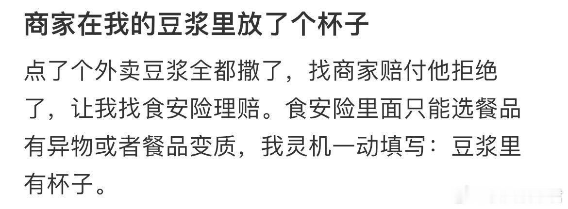 商家在我的豆浆里放了个杯子