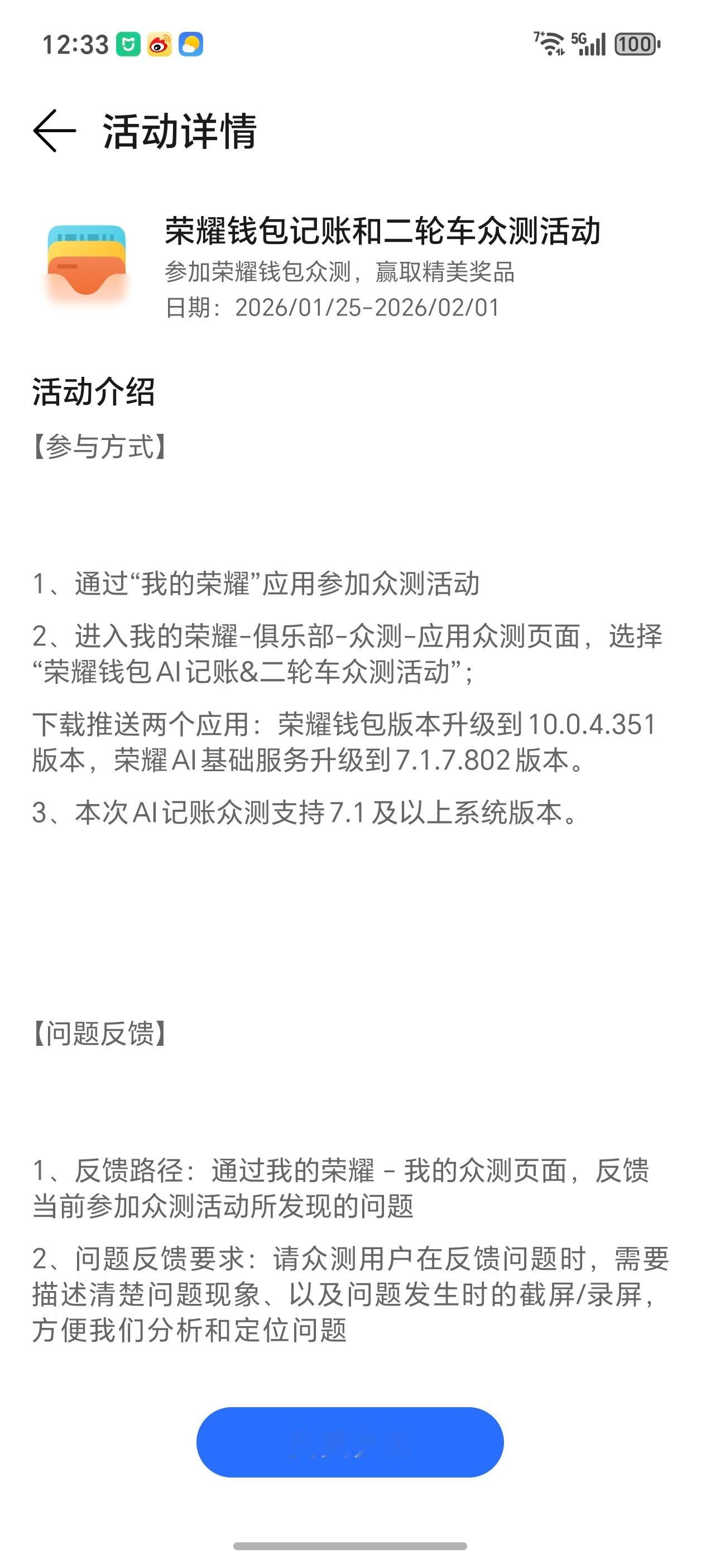 荣耀钱包新版本众测活动来了,新增AI记账功能、适配小牛电动车和台铃电动车车钥匙,