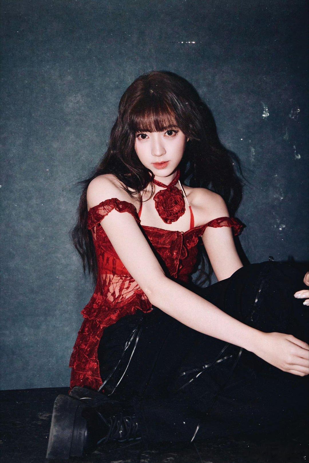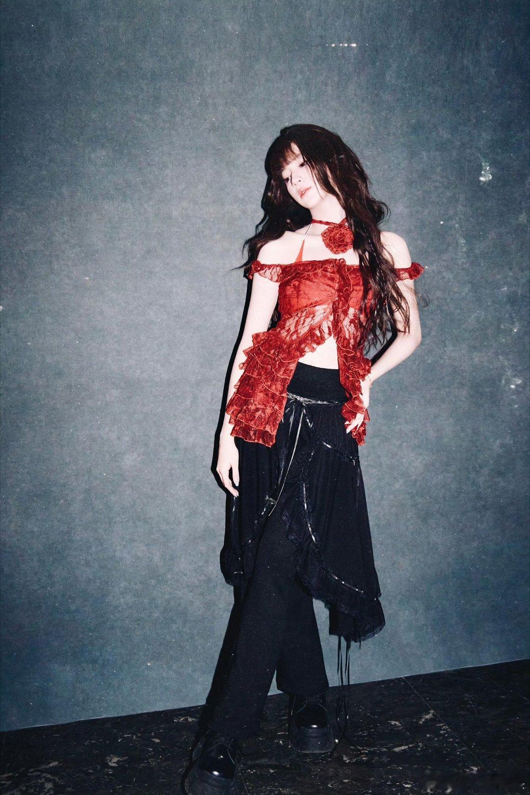 欧阳娣娣摇曳生姿红玫瑰娣娣这红玫瑰造型杀疯了!红吊带配黑长裤甜酷拉满,羊毛卷齐刘海就是真人芭比,笑起来甜度爆表