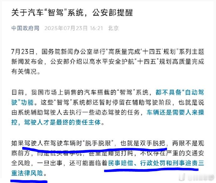 看到有博主赞叹这种远程泊车的。强烈建议不要远程(人不在现场)用,因为这种是有高风险的,一旦出了事情,车损是小事,要是万一有个小孩什么的跑过来,或者地上蹲着个小孩。汽车探测漏了,出了事故,车主是要坐牢的。之前公安部专门发文提醒的,别冒风险,现在智驾属于是辅助智驾,出了问题,最高可追究刑事责任。这个就和学校门口限速20一样,你平时50/60速度过去,没有学生进出没事,一旦你这个速度撞到人,那就是全责。品牌也说过,这类泊车,人不在座位上,也要在车辆旁边注意观察,随时介入。鸿蒙智行