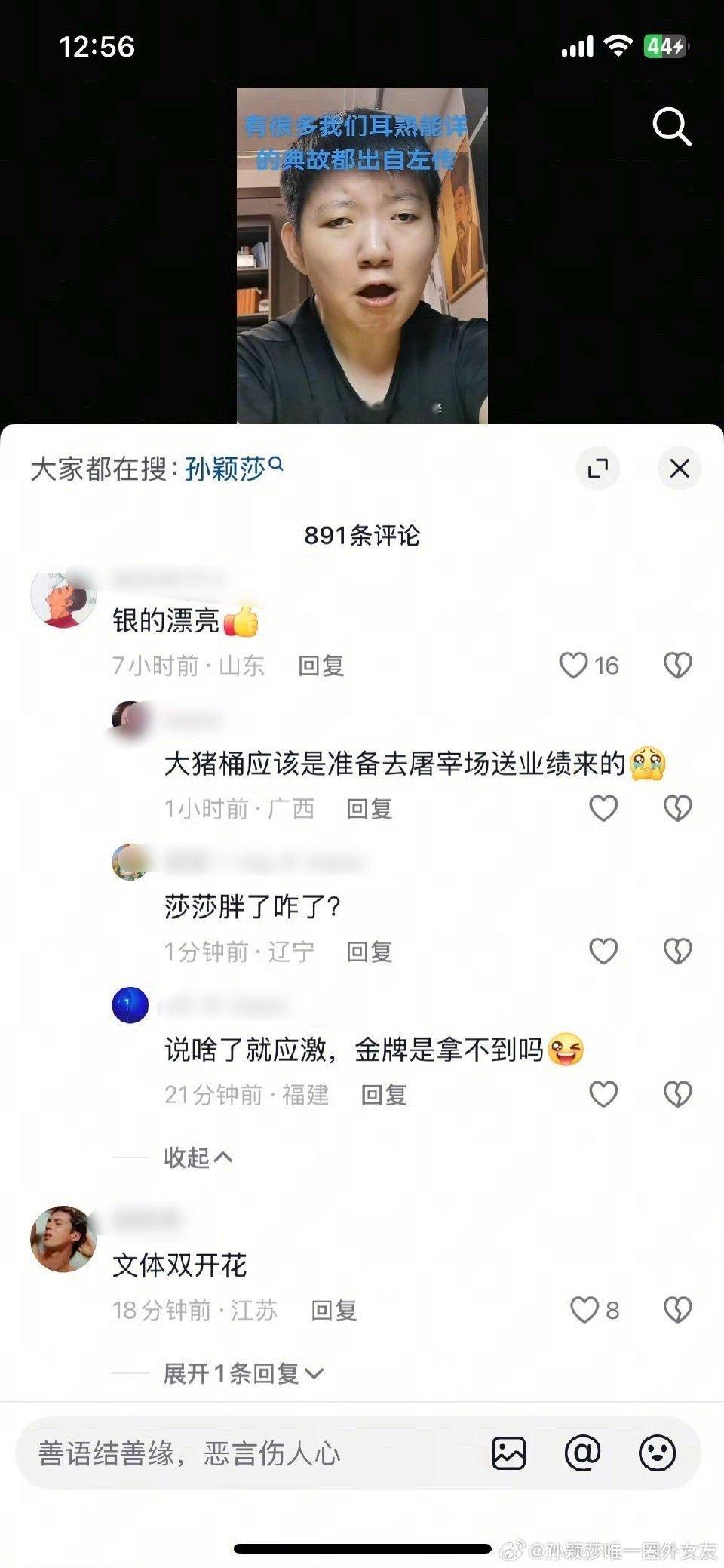 这真的好离谱,这群什么人啊,为什么要去患nt博主评论区80孙颖莎,博主无辜,孙颖莎更无辜,而且这样的80长达一年多了。国家运动员不容许被这样对待!
