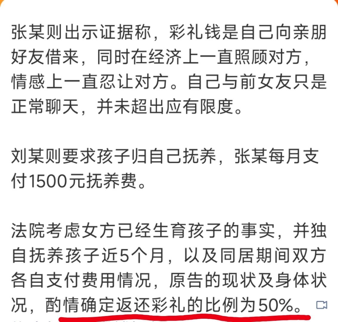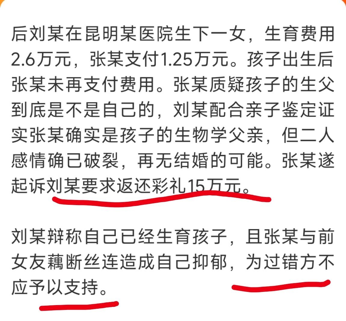 男子借钱付彩礼被女方告强奸这事倒没啥特别的,就是女方发现男方和前女友聊天,然后就抑郁了,两个人感情不和,男方外出务工去了也不在家,但是女方还是报了个强奸。但是不同的是,这次警方把案件撤销了,估计是男方人都不在还告强奸确实太离谱了。另外这两个人是4月份订的婚,收了彩礼,5月女方就提了离,现在是两个人闹离婚,男方要求女方还彩礼,女方说孩子是你的,是你和前女友聊天犯错在先,彩礼不退你每个月还要给我1500元生活费。目前的判决结果是女方退15万彩礼的一半。