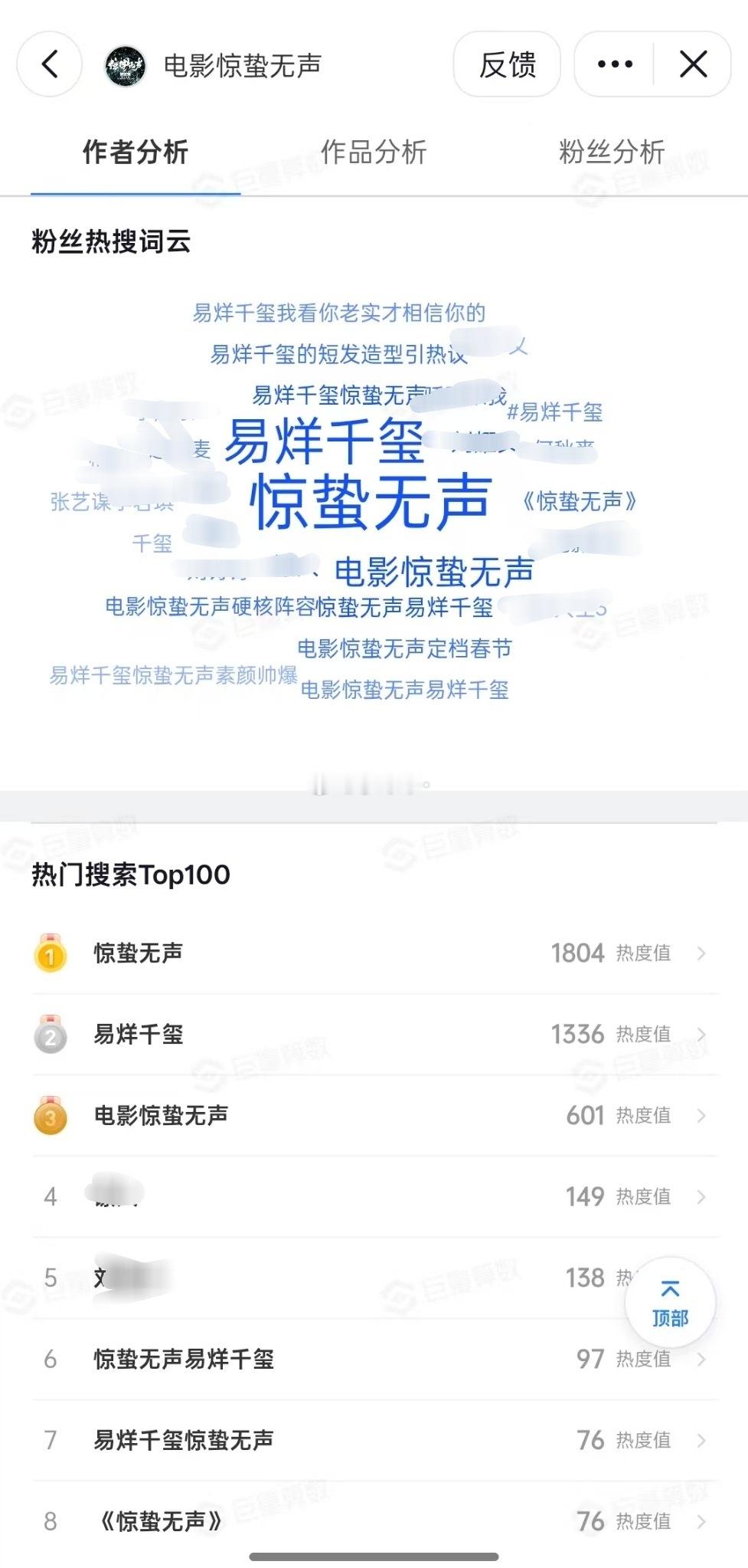 惊蛰无声易烊千玺热度断层了,词云也是占比最多,一番男主严迪春节见!
