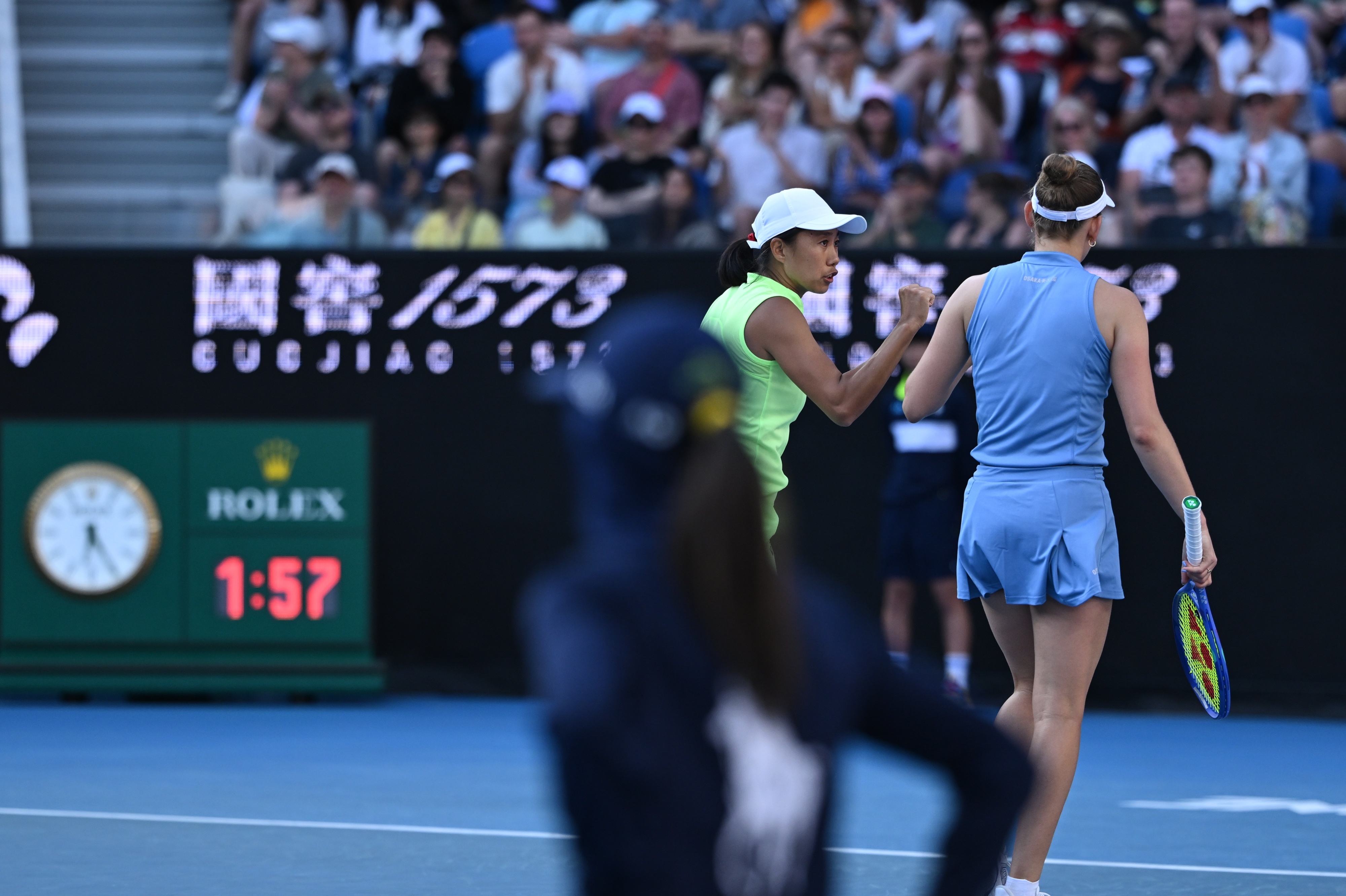 澳网女双第二轮,张帅/梅尔滕斯挽救三个赛点7-5/4-6/7-6(12-10)险胜约维奇/姆博科,晋级16强。梅尔滕斯最后:全靠帅姐你了澳网2026