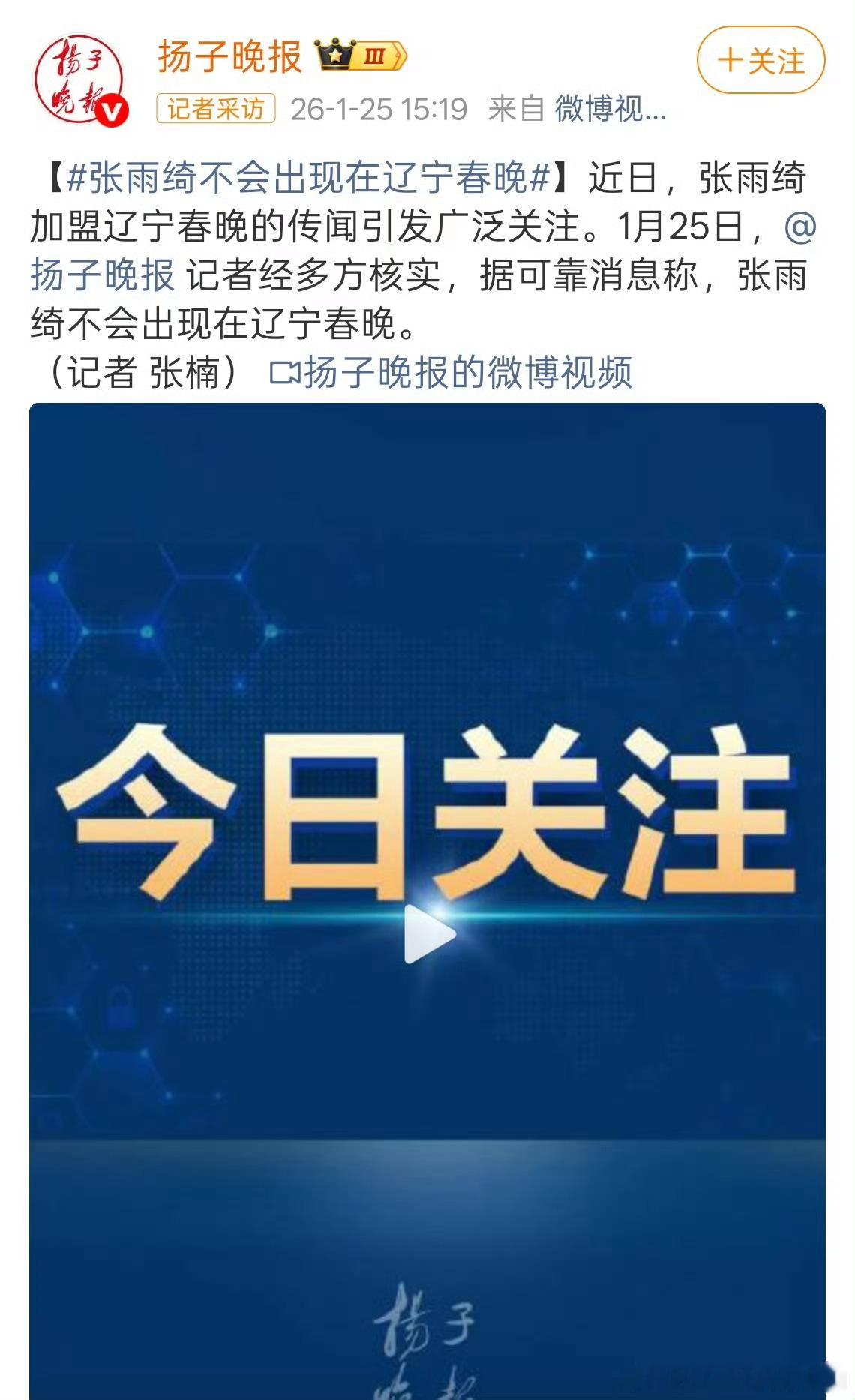 媒体证实张雨绮不会出现在辽宁春晚,此前有录制路透