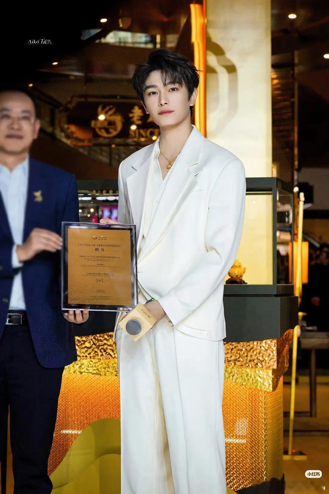 老凤祥给丁禹兮下的黄金聘书1.17克,1月17日宣,真的很很重视、很满意老凤祥还送了几百条水晶手链给现场的粉丝。